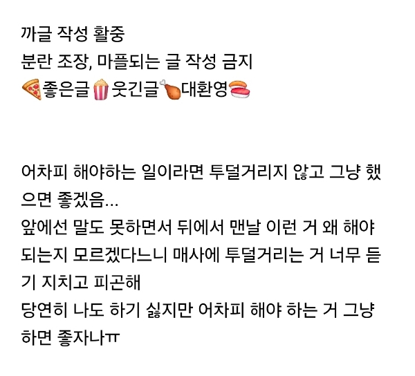 작성자주비 작성시간 25.11.18 ㅇㅈ 진짜 일도 하기 싫어하면서 모든일에 불평불만..