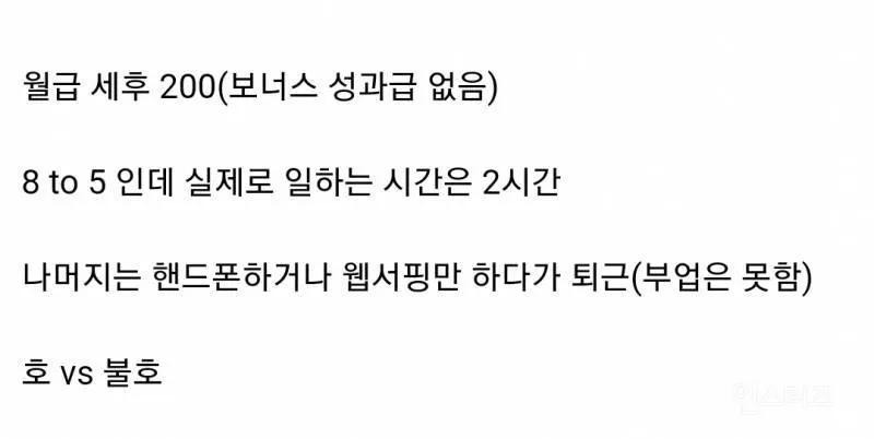 [스크랩] [흥미돋]개꿀 빠는 회사인데 세후 200이라면 작성자flflf|작성시간25.11.17|조회수30,758 목록 댓글 307 글자크기 작게가 글자크기 크게가 다음검색 스크랩 원문 : 이종격투기 현재 게시글 추가 기능 열기 북마크 공유하기 신고 센터로 신고 댓글 댓글 307 댓글쓰기 답글쓰기 댓글 리스트 작성자프로틴걸이된다 | 작성시간 25.11.18 난 개바쁘고 주말에도 일하는데 200인디어제도 새벽에 퇴근함 ㅆㅂ 나 저런회사 너무 원해 작성자납작복숭아달달 | 작성시간 25.11.18 200은너무적음 작성자피넛버터크크런치 | 작성시간 25.11.18 불호 작성자밀키스제로존맛 | 작성시간 25.11.18 난데.. 작성자소공대 | 작성시간 25.11.20 개개개불호 댓글 전체보기
