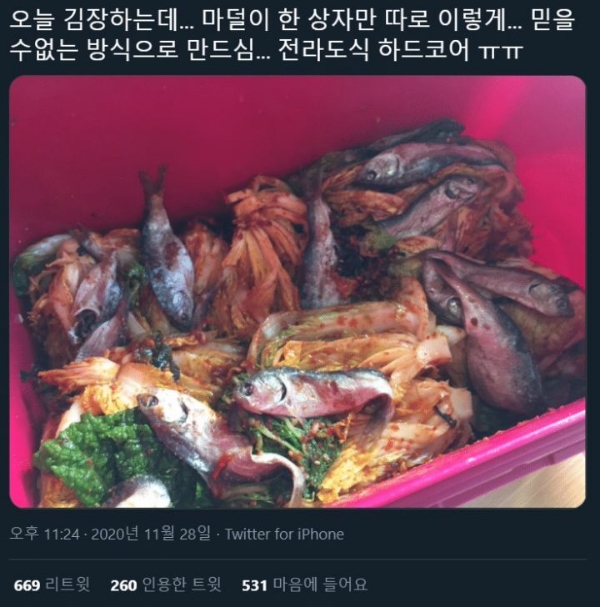 [흥미돋]오늘 김장하는데... 마덜이 한 상자만 따로 이렇게... 믿을수없는 방식으로 만드심... 전라도식 하드코어ㅠㅠ.twt