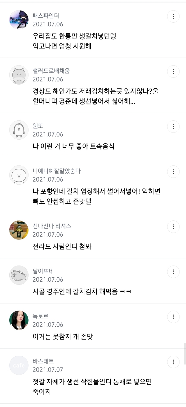나는 경상도 친구네 김치보고 놀랬어 갈치 큰게 들어있어서 -