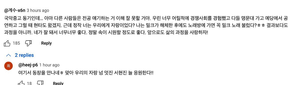 [스크랩] [흥미돋]서현진 유퀴즈영상에 달린 국악고 동창댓글 작성자이건 모죠|작성시간25.11.18|조회수64,618 목록 댓글 36 글자크기 작게가 글자크기 크게가 출처: 여성시대 맹구야 놀자 국악중 - 국악고 루트 타다가 sm 캐스팅.4살부터 하던 무용 그만두고 가수 데뷔.1년, 딱 한번만의 활동을 끝으로 해체.그 후 10여년의 무명생활을 겪었던 친구에게 "네가 잘 돼서 너무너무 좋다.정말 속이 시원할 정도로 좋다." 미방은 행복한 쿼카같은 서현진으로,, 다음검색 스크랩 원문 : *여성시대* 차분한 20대들의 알흠다운 공간 현재 게시글 추가 기능 열기 북마크 공유하기 신고 센터로 신고 댓글 댓글 36 댓글쓰기 답글쓰기 댓글 리스트 작성자엡앤플로우 | 작성시간 25.11.18 눈물나 ㅠㅠ 작성자구름위를뚱뚱 | 작성시간 25.11.18 개눈물남 ㄹㅇ 작성자Cmcnc | 작성시간 25.11.18 나 왜 우냐 작성자누리자이언츠 | 작성시간 25.11.18 감동적 작성자LUNE | 작성시간 26.01.02 진심감동ㅠ 댓글 전체보기