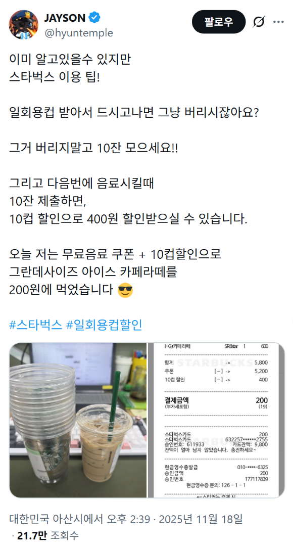 근데 난 걍 텀블러 쓰고 에코별 1개 받는 게 더 좋아 ㅋㅋㅋㅋㅋ