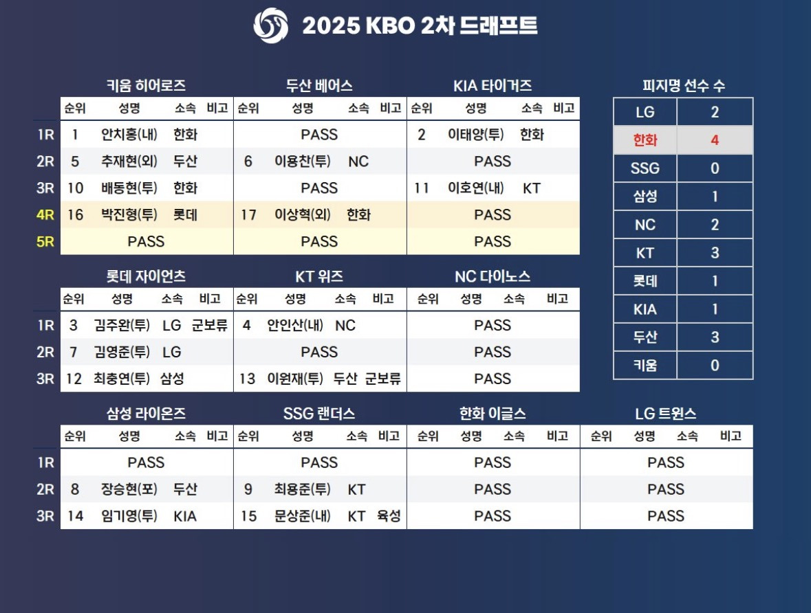 [기타][프로야구] 2025 2차드래프트 최종결과 작성자허영지|작성시간25.11.19|조회수18,223 목록 댓글 190 글자크기 작게가 글자크기 크게가 출처: 여성시대 허영지 다음검색 현재 게시글 추가 기능 열기 북마크 공유하기 신고 센터로 신고 댓글 댓글 190 댓글쓰기 답글쓰기 댓글 리스트 작성자연봉일억 | 작성시간 25.11.20 하….할많하않… 작성자20250404112200 | 작성시간 25.11.20 헐 안치홍 또가????? 작성자최형우 | 작성시간 25.11.20 임기영 고생만 하다가네.. 꼭 살아나서 돈 많이 벌으셈 작성자Eydbdb | 작성시간 25.11.20 예??????? 아니 임기영… 아…. 작성자NC다이노스 단디 | 작성시간 25.11.21 잘가라 댓글 전체보기