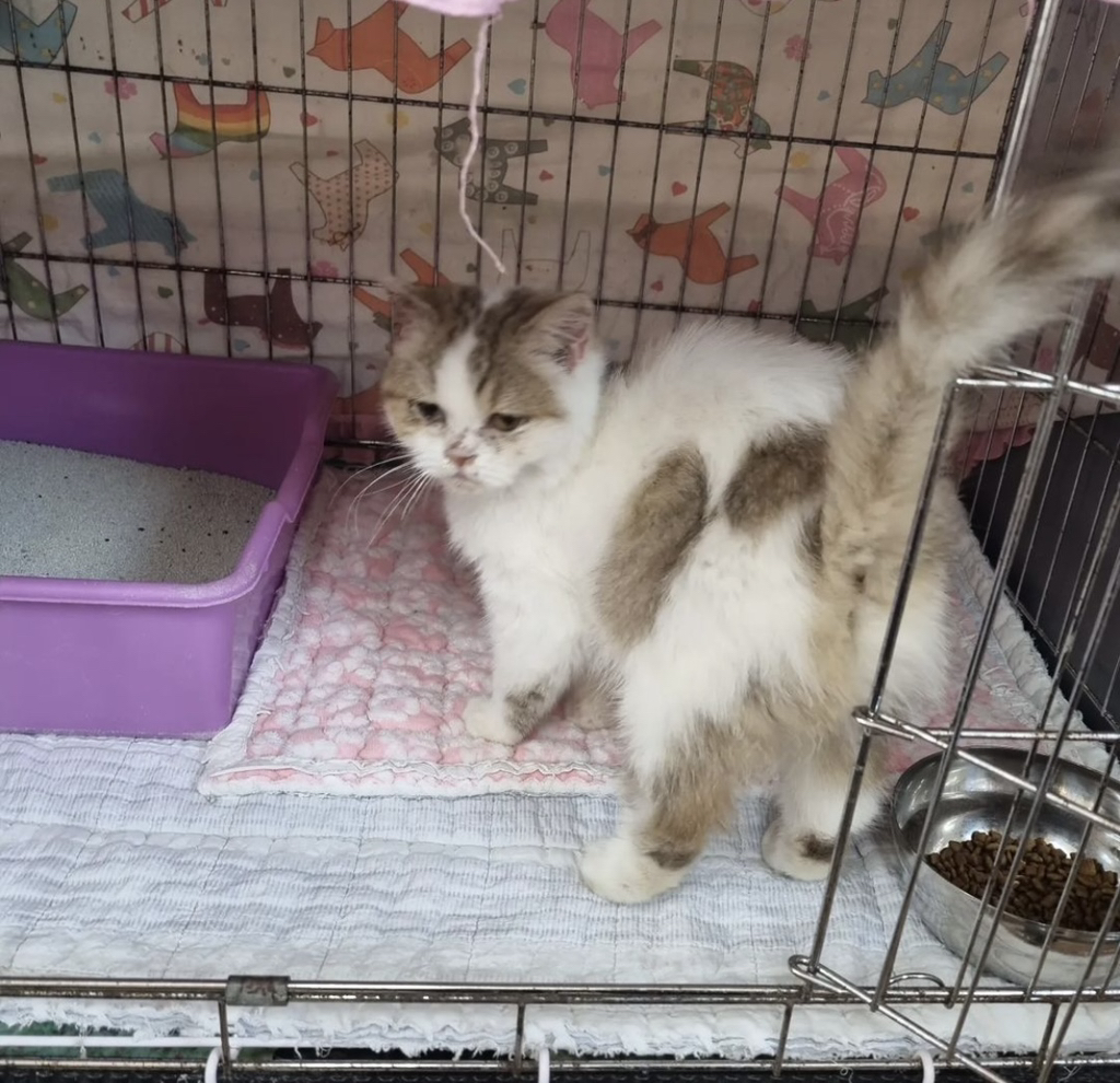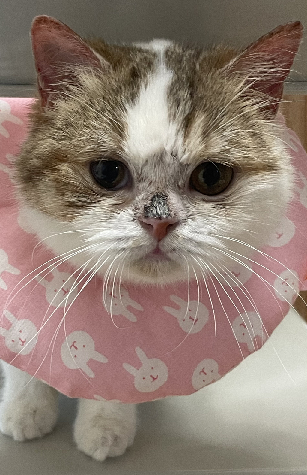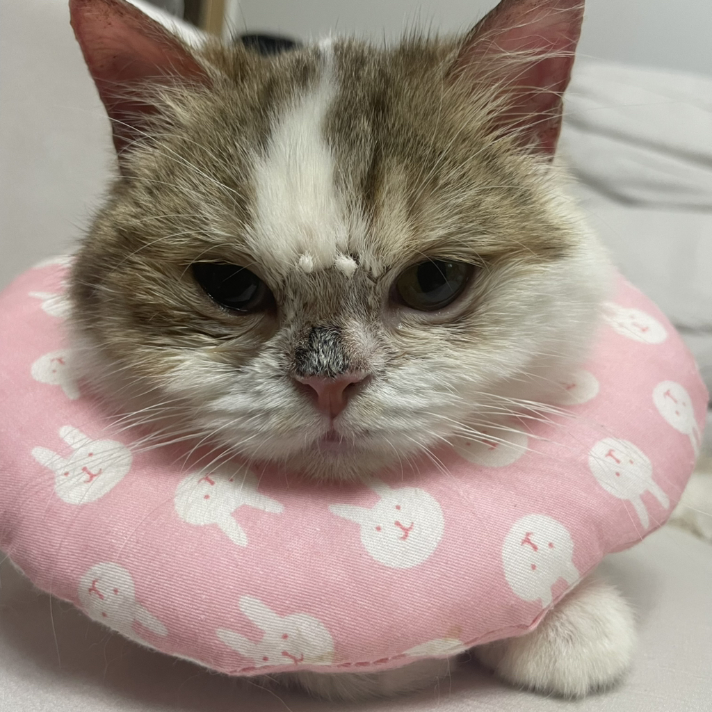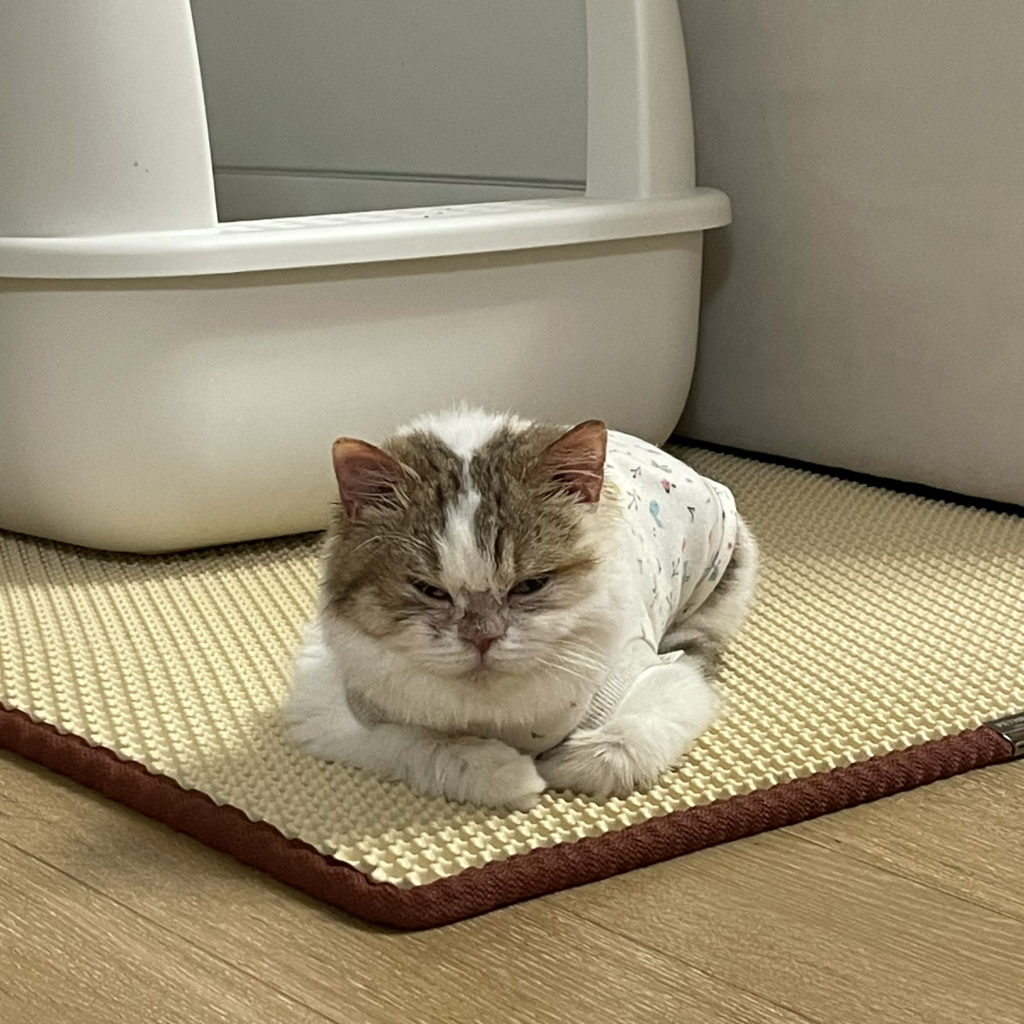 처음 집에 온 날 놀아달라고 바로 달라붙음(중성화를 바로 해서 환묘복 입은 상태)