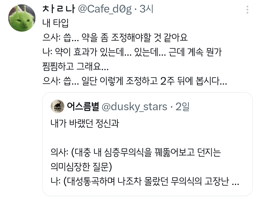 작성자저를앍아요 작성시간 25.11.20 약을 늘리거싶어...근데 안늘랴주샤