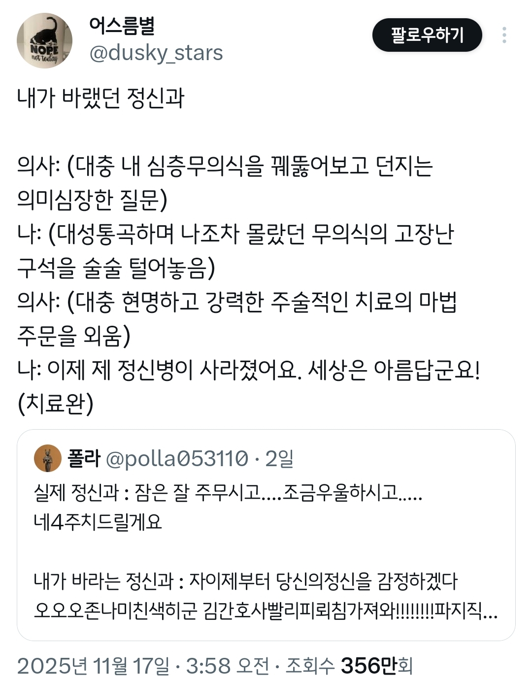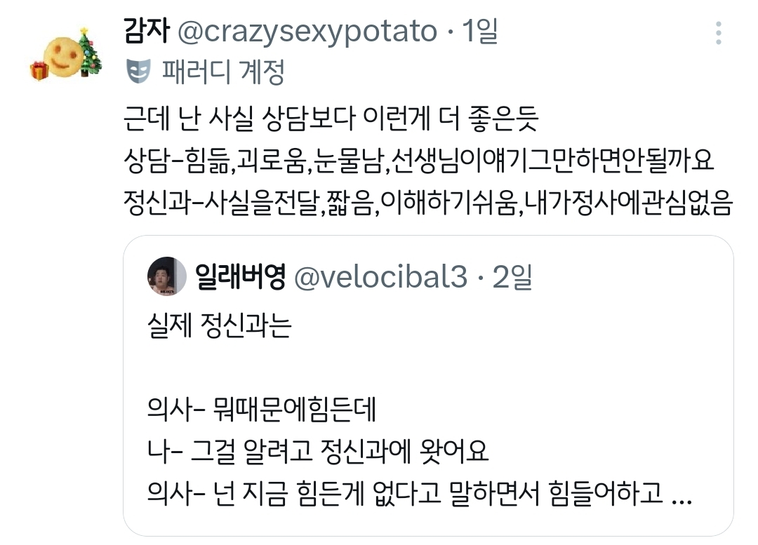 작성자치즈연어 작성시간 25.11.20 상담과 치료는 다르지