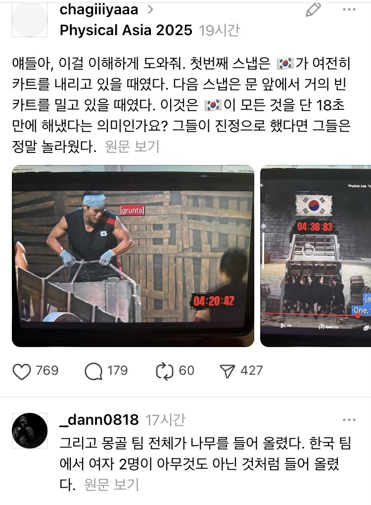 장은실 최승연이니까 들수있었던 거고 저게 가벼웠으면 성문 부술때 훨씬 불리했겠지 빡대갈들 결승전 두경기에서 힘차이가 현저했는데 그건 못봤나
