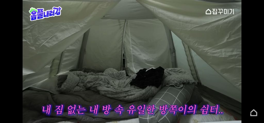 본가에 살고있는데 무려 텐트를 치고 산단다