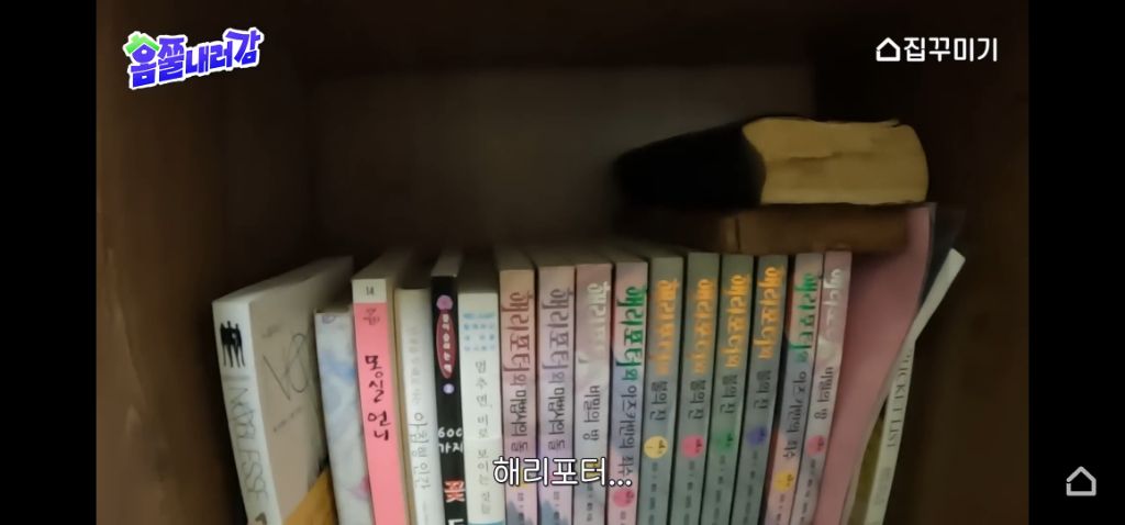 의미심장하게 해리포터 전집을 비추는 카메라..
