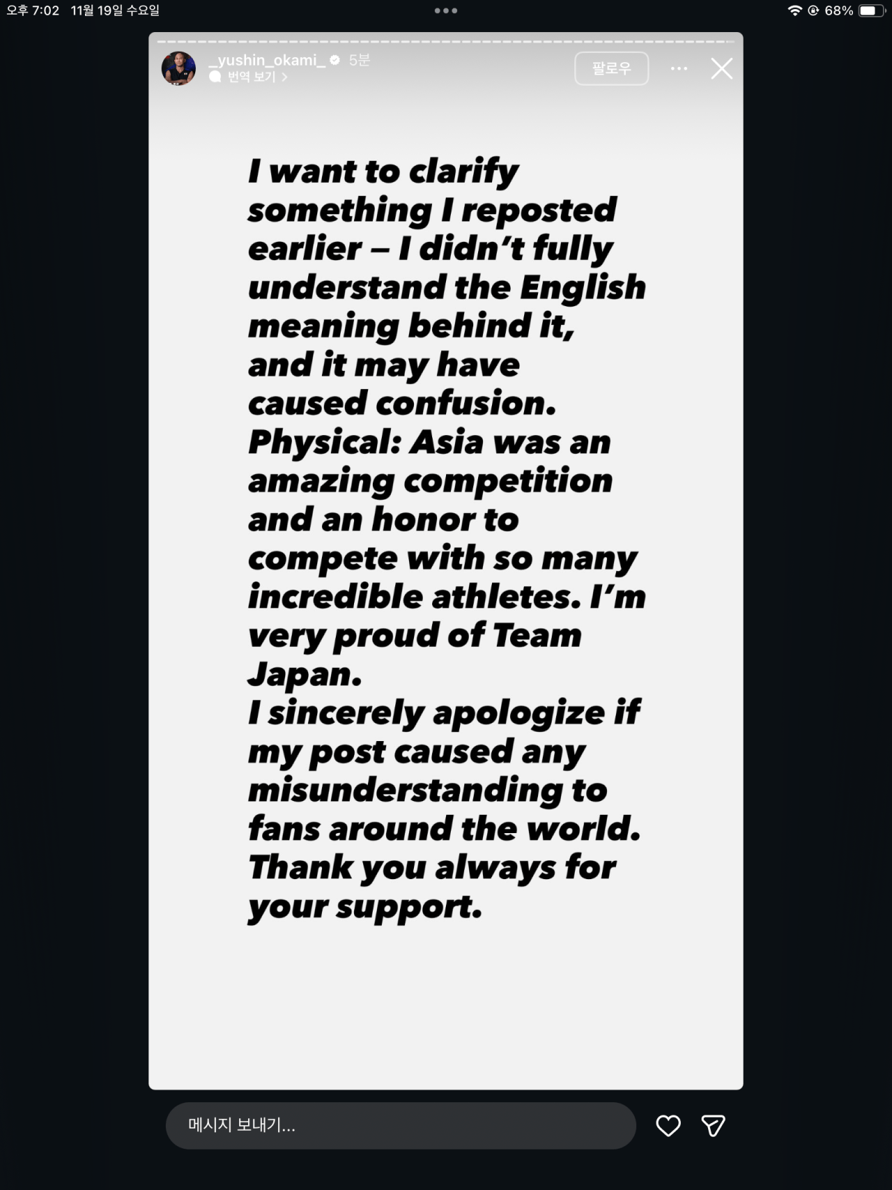 [기타]피지컬아시아 오카미유신 인스타 사과문 작성자맛차말차|작성시간25.11.19|조회수59,797 목록 댓글 108 글자크기 작게가 글자크기 크게가 출처: 여성시대 먓차말차 다음검색 현재 게시글 추가 기능 열기 북마크 공유하기 신고 센터로 신고 댓글 댓글 108 댓글쓰기 답글쓰기 댓글 리스트 작성자빅도그 | 작성시간 25.11.20 븅딱 작성자왈뚜왈끼 | 작성시간 25.11.20 병신 작성자땀벌벌나노 | 작성시간 25.11.20 대머리 작성자트도럼람프뿌 | 작성시간 25.11.21 미친 작성자뭐죠 | 작성시간 25.11.22 어어~ 니 뒤에 곰! 댓글 전체보기