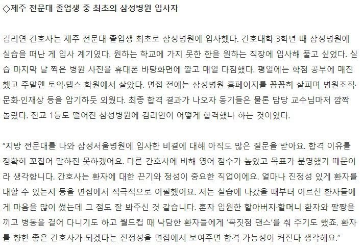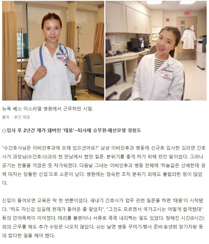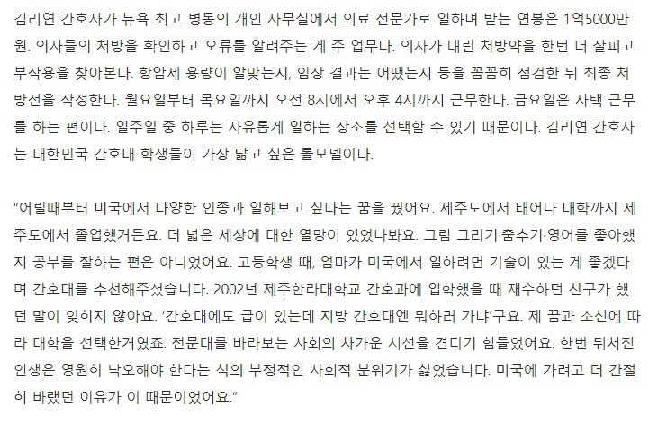 전문대 간호학과→삼성서울병원→뉴욕 3대 병원