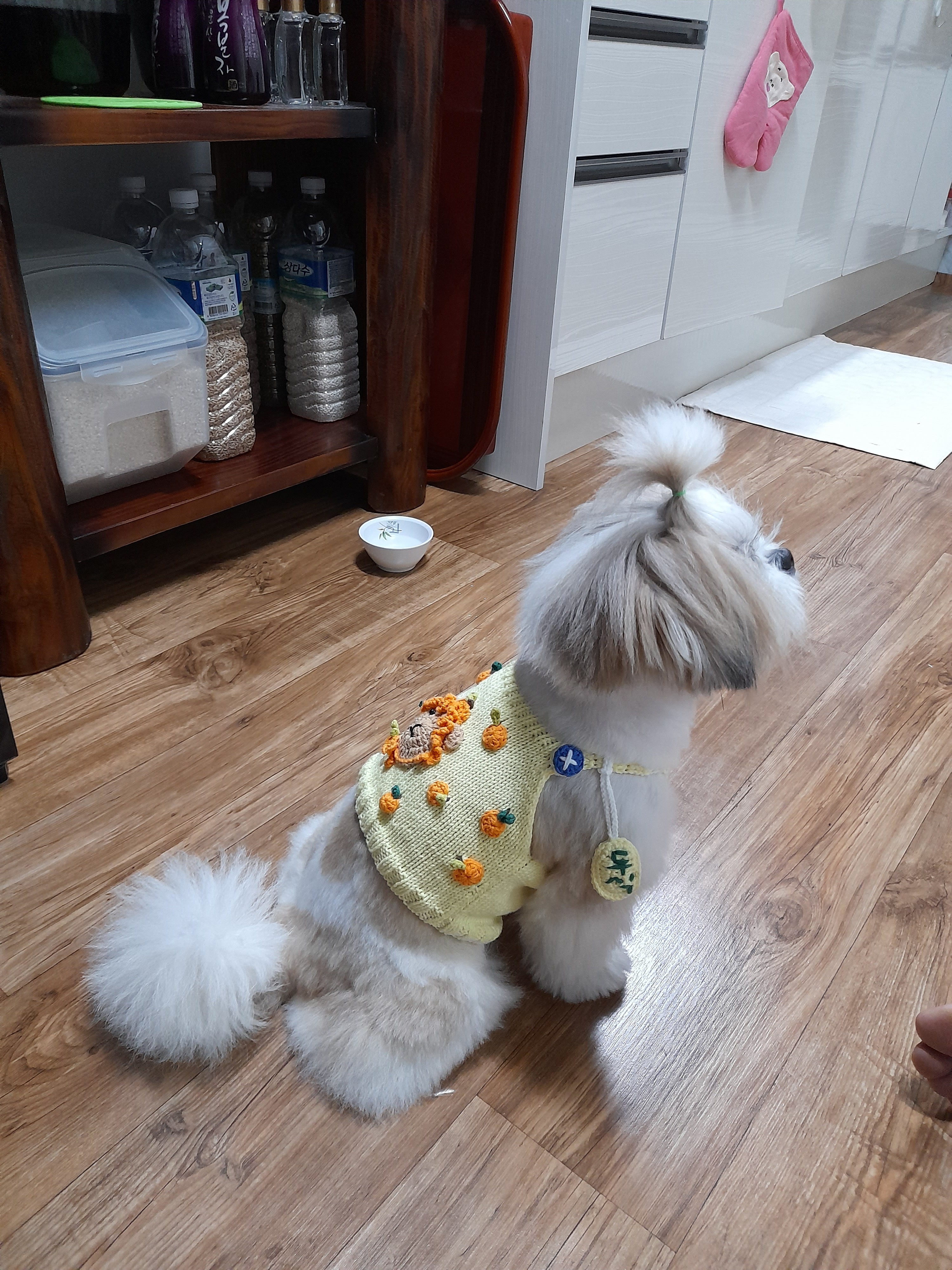 이거 넘 귀엽지ㅠㅠ 약간 주머니?처럼 양쪽에 달아주고 싶었는데, 저 크기에는 똥도 못담을것 같아서 그냥 꼬메버렸으.