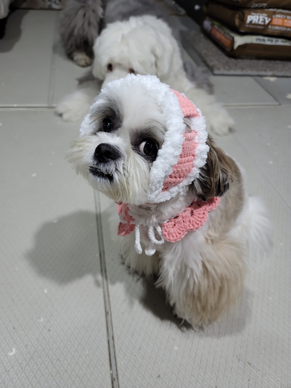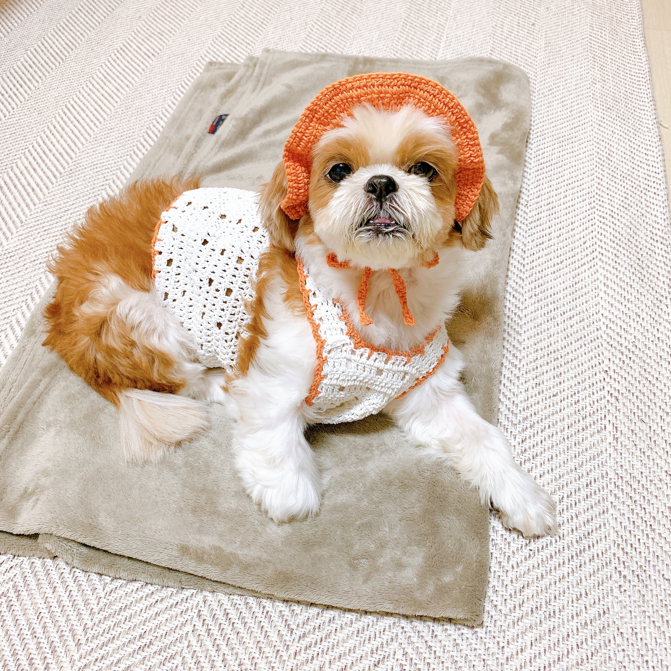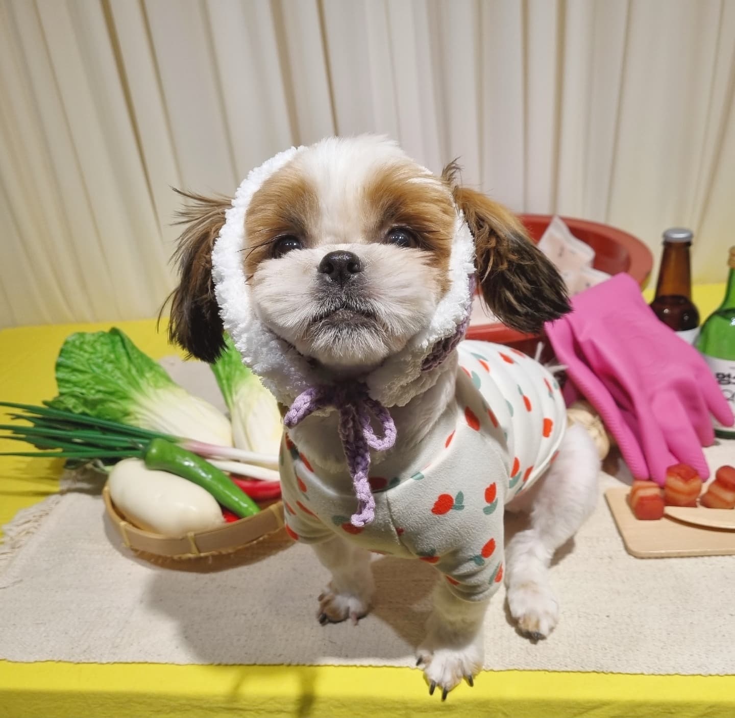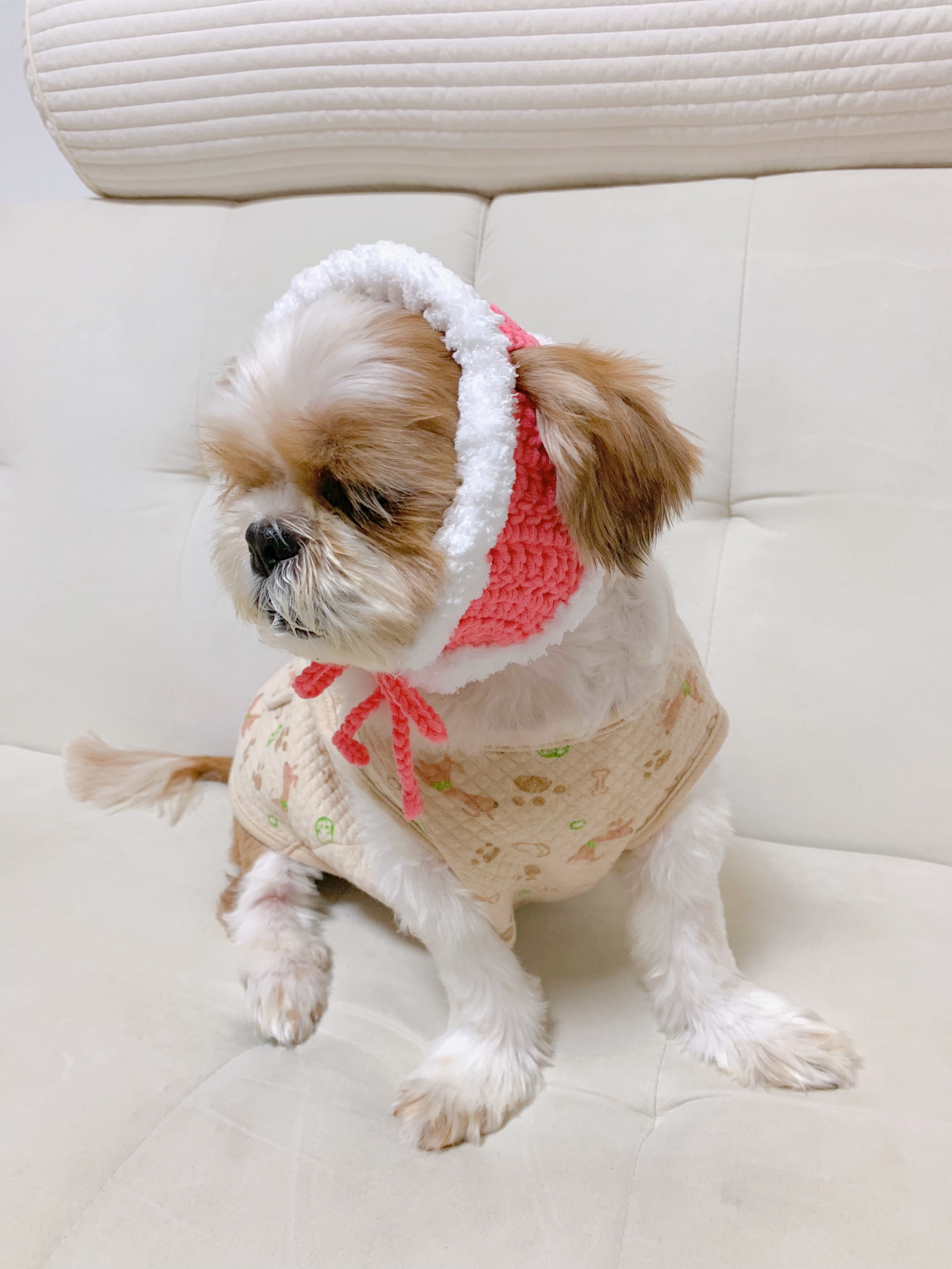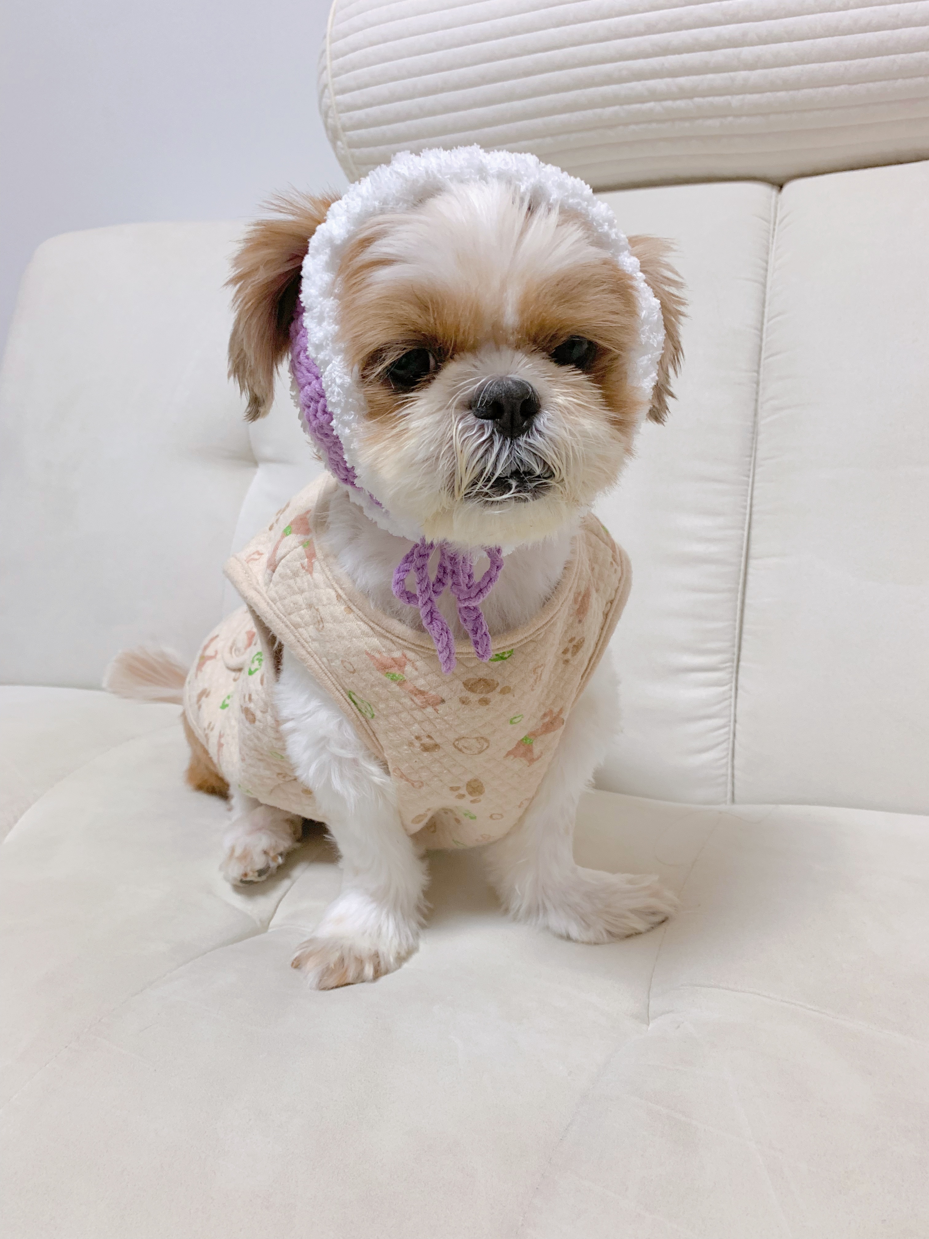 넘 귀엽지만 울 강쥐가 많이 커부려서 옷도 낑기고,,, 처음 만들어본 이 모자도 대가리에 낑겼다고 한다..