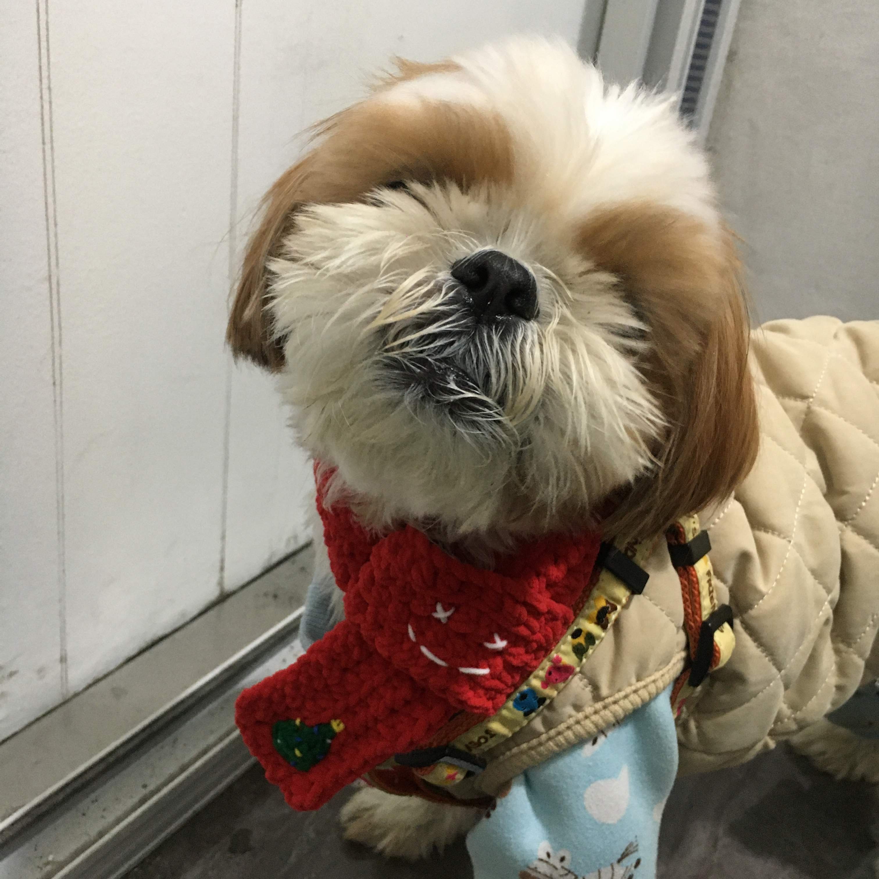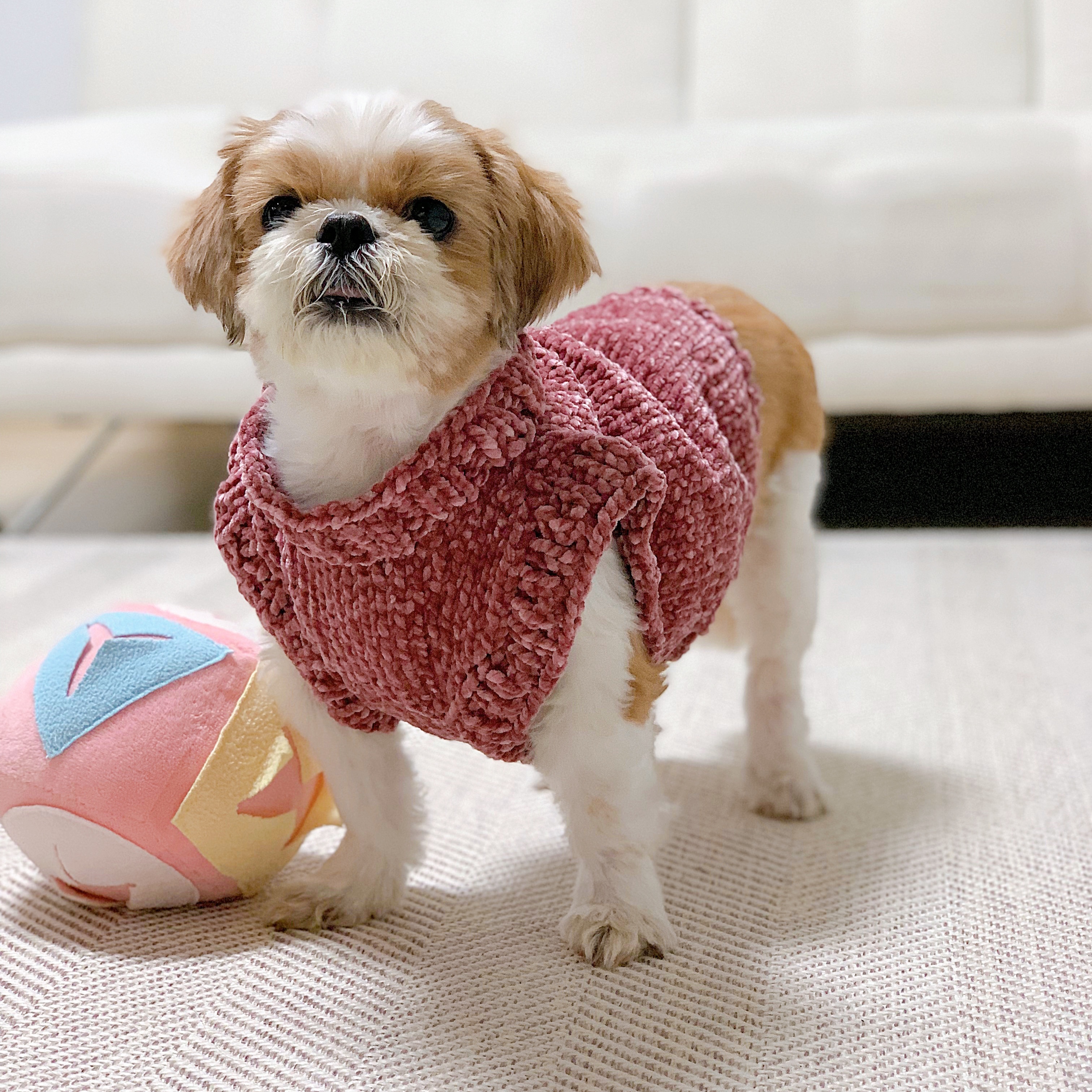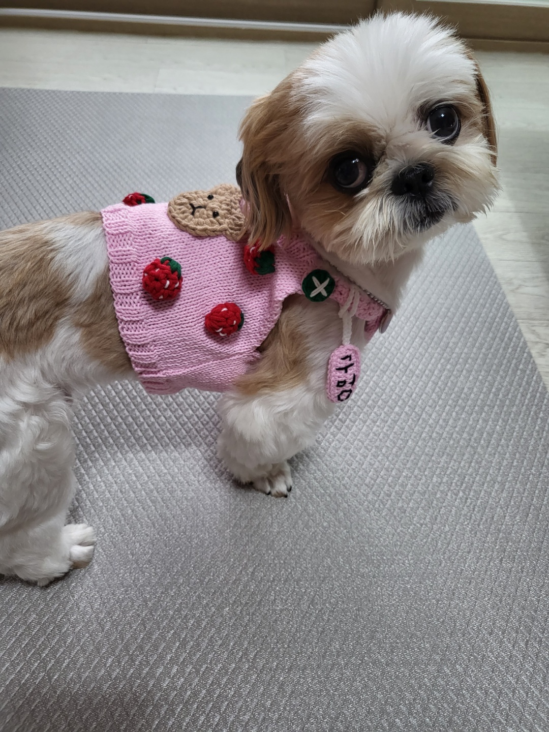 임보처에서 울 강쥐를 데려왔을 당시가 11월이라 추웠을때..처음으로 떠준 옷인데 ㅋㅋㅋㅋㅋ이건 아주 엉망진창이였어 중간중간 빵꾸도 나고 말이지,..
