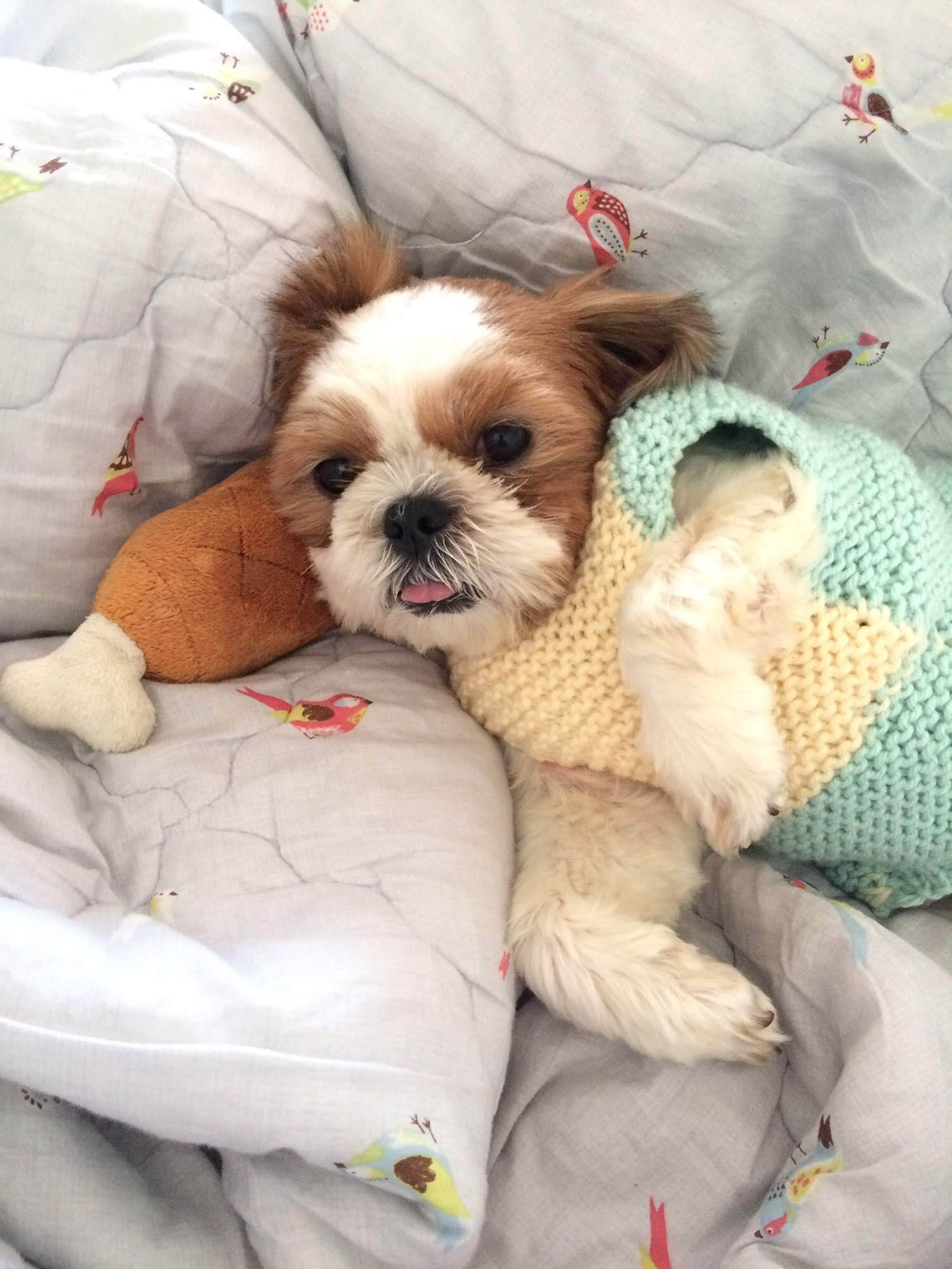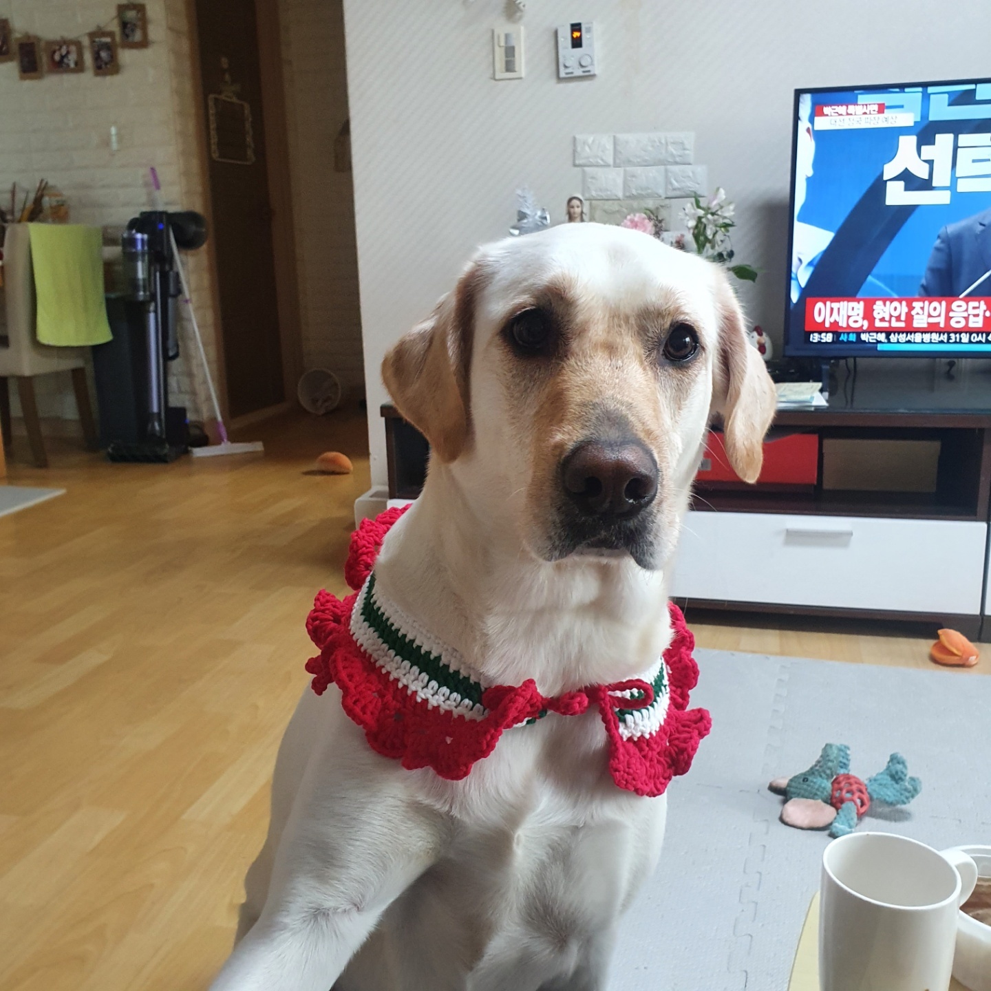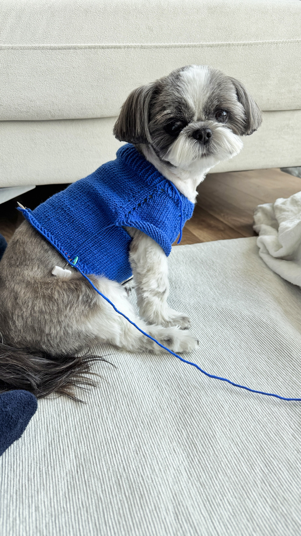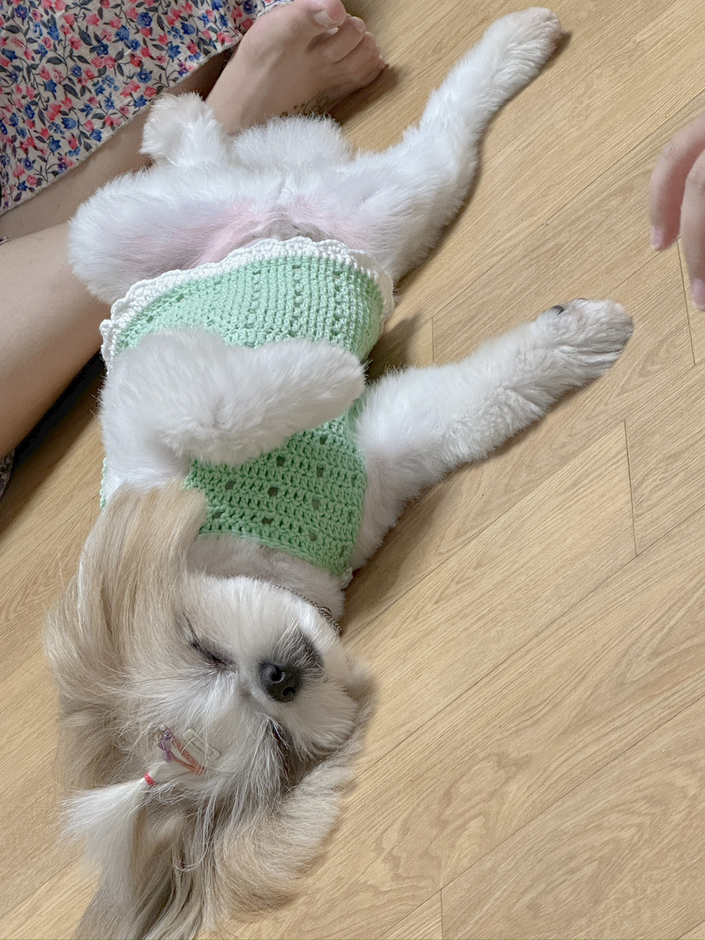 평소에는 나가자고 쳐다보거나 놀자고 장난감 가져오는데 뜨개질하면서 몸에 대보고 하면 그냥 옆에 누워서 자더라구 ㅎㅎ