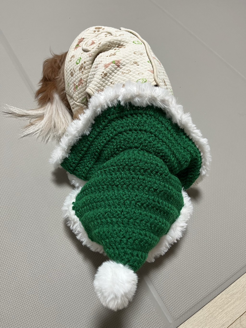 ㅋㅋㅋㅋㅋ이건 크리스마스를 노리고 만들어본 모자야 ㅋㅋ 귀엽지.. 옆에있는 친구는 우리집에서 짧게 임보했던 아가야! ㅎㅎ