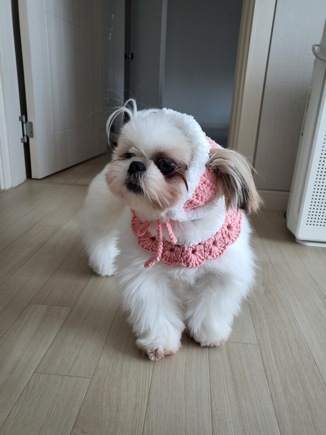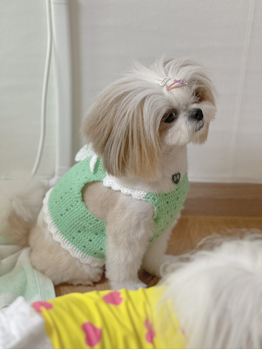 요건 아까 만들었던 옷의 하네스??버전이야 ㅋㅋㅋㅋㅋ예쁜옷 입히면 그위에 하네스 또 입히기 싫자나ㅜ