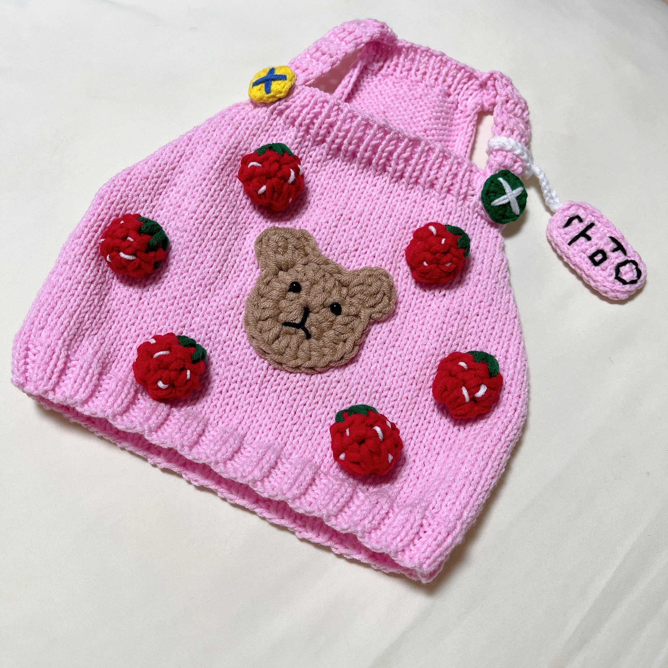 구멍이는 핑크가 잘어울리고,, 딸기를 주제로 만들었어. ㅎㅎ 이 옷의 이름은 '딸기구멍'