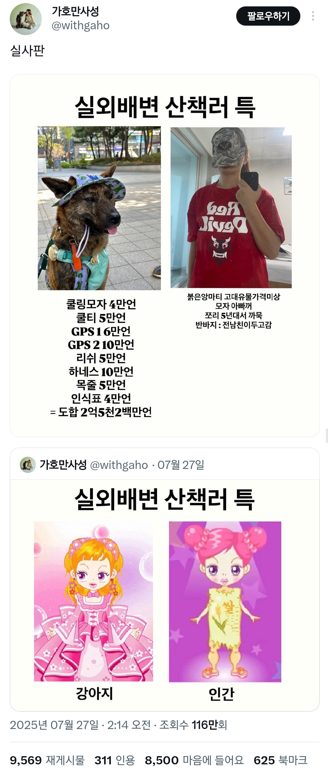 [스크랩] [흥미돋]실외배변 산책러 견주들 옷차림 특징.twt 작성자누룩곰팡이|작성시간25.11.19|조회수48,617 목록 댓글 67 글자크기 작게가 글자크기 크게가 출처: https://x.com/withgaho/status/1949156405732335796?s=19 여성시대 스피또띠아강쥐에게 몰빵한 패션 다음검색 스크랩 원문 : *여성시대* 차분한 20대들의 알흠다운 공간 현재 게시글 추가 기능 열기 북마크 공유하기 신고 센터로 신고 댓글 댓글 67 댓글쓰기 답글쓰기 댓글 리스트 작성자일사삼 | 작성시간 25.11.20 진심 나다 ㅋㅋㅋㅋ 산책갈때는 걍 다 찢어져가는 옷 입고함... 작성자성격:급함 | 작성시간 25.11.20 나잔아 나 고딩때입던 후드티 아직도 입고다님 울강쥐는 러프웨어 풀셋~^^ 작성자유정부인 | 작성시간 25.11.20 요즘은 걍 잠옷 벗고 맨몸에 롱패딩+슬리퍼 가능 바바리걸이되 작성자신분상승은나의모토 | 작성시간 25.11.20 진심나닼ㅋㅋㅋㅋㅋㅋ 작성자하늘땅별땅땅땅땅 | 작성시간 25.11.29 ㅋㅋㅋㅋㅋㅋㅋㅋㅋㅋㅋㅋㅋㅋㅋㅋ 댓글 전체보기