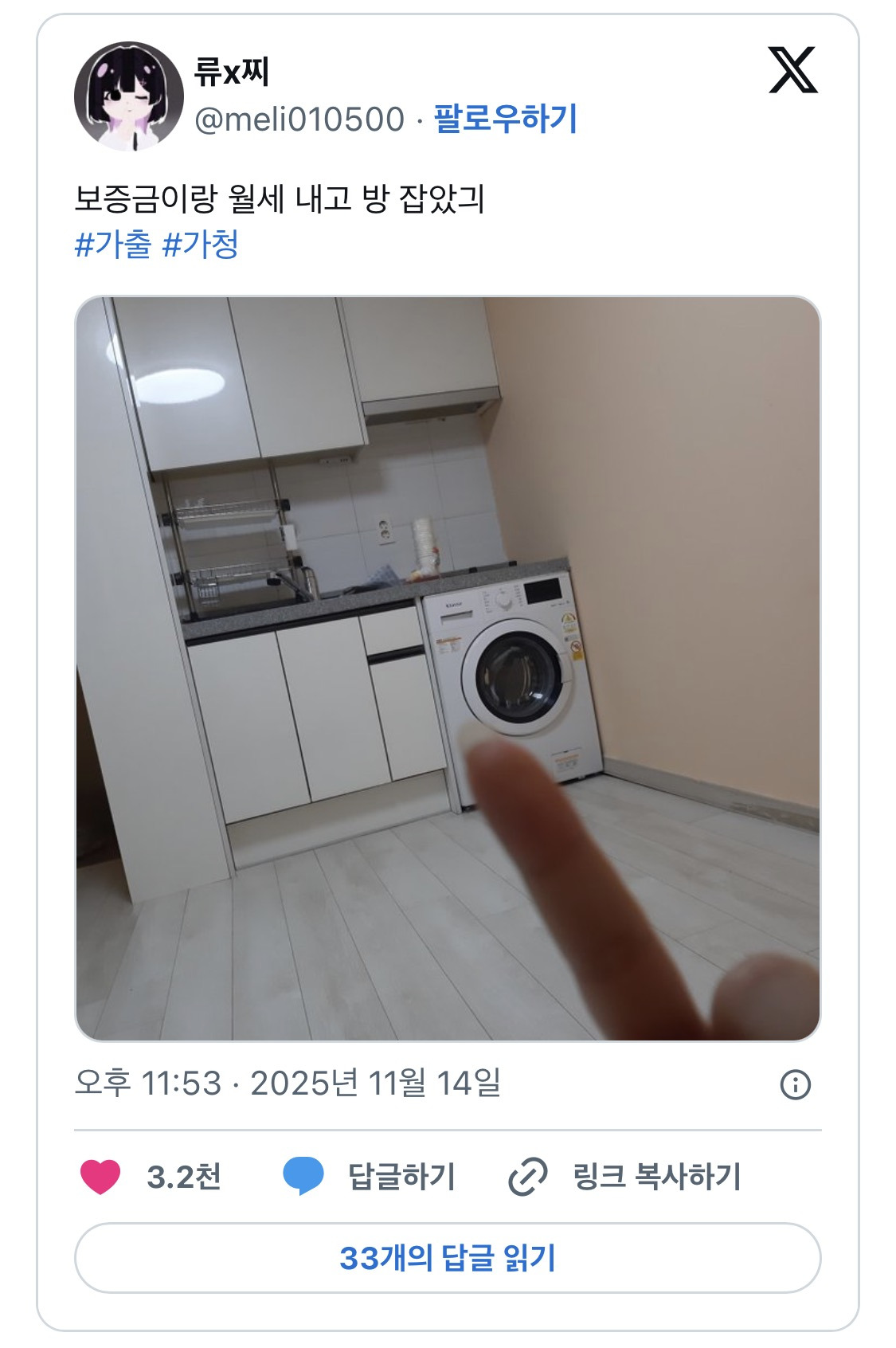 보증금이랑 월세 내고 방 계약한 가출청소년 트윗 뜸