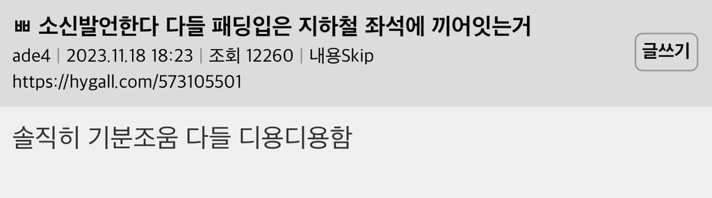 [스크랩] [흥미돋]소신발언한다 다들 패딩입은 지하철 좌석에 끼어잇는거 작성자돌연사 박물관|작성시간25.11.20|조회수70,111 목록 댓글 55 글자크기 작게가 글자크기 크게가 출처 : hygall.com/573105501 다음검색 스크랩 원문 : *여성시대* 차분한 20대들의 알흠다운 공간 현재 게시글 추가 기능 열기 북마크 공유하기 신고 센터로 신고 댓글 댓글 55 댓글쓰기 답글쓰기 댓글 리스트 작성자파파팟포포폿 | 작성시간 25.11.20 아 인정ㅋㅋㅋ물론 여자한정. 남자는 냄새나고 기분 더러움 작성자나는SOLO | 작성시간 25.11.20 남자패딩은 냄새나ㅠ 작성자도파민도도파민도파민민 | 작성시간 25.11.20 남자들은 시러 비듬묻어잇어.. 작성자조실세 | 작성시간 25.11.20 아 그래서 잠이 솔솔 오는거구나 작성자피노누아 | 작성시간 25.11.20 존나싫은데 남자들 댓글 전체보기