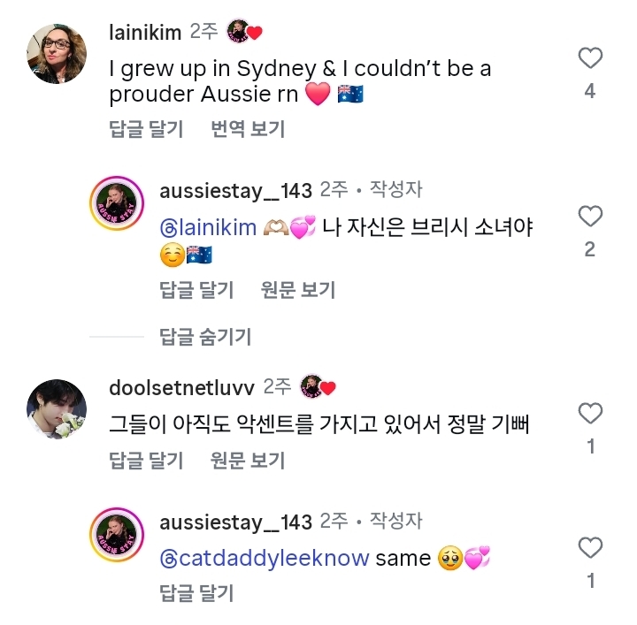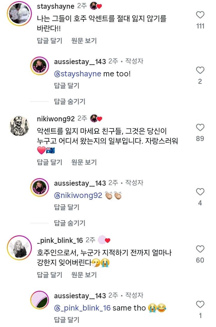호주 악센트가 있어서 행복하고 자랑스럽다