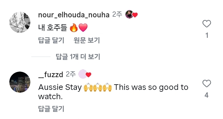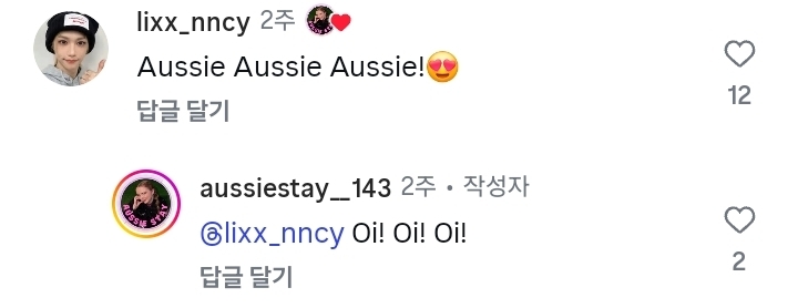 답댓글 작성자내심장은오직Lee 작성시간 25.11.20 약간 대~한민국! 하면 짝짝짝 짝짝 박수 치는 것 같은 국룰임ㅋㅋ