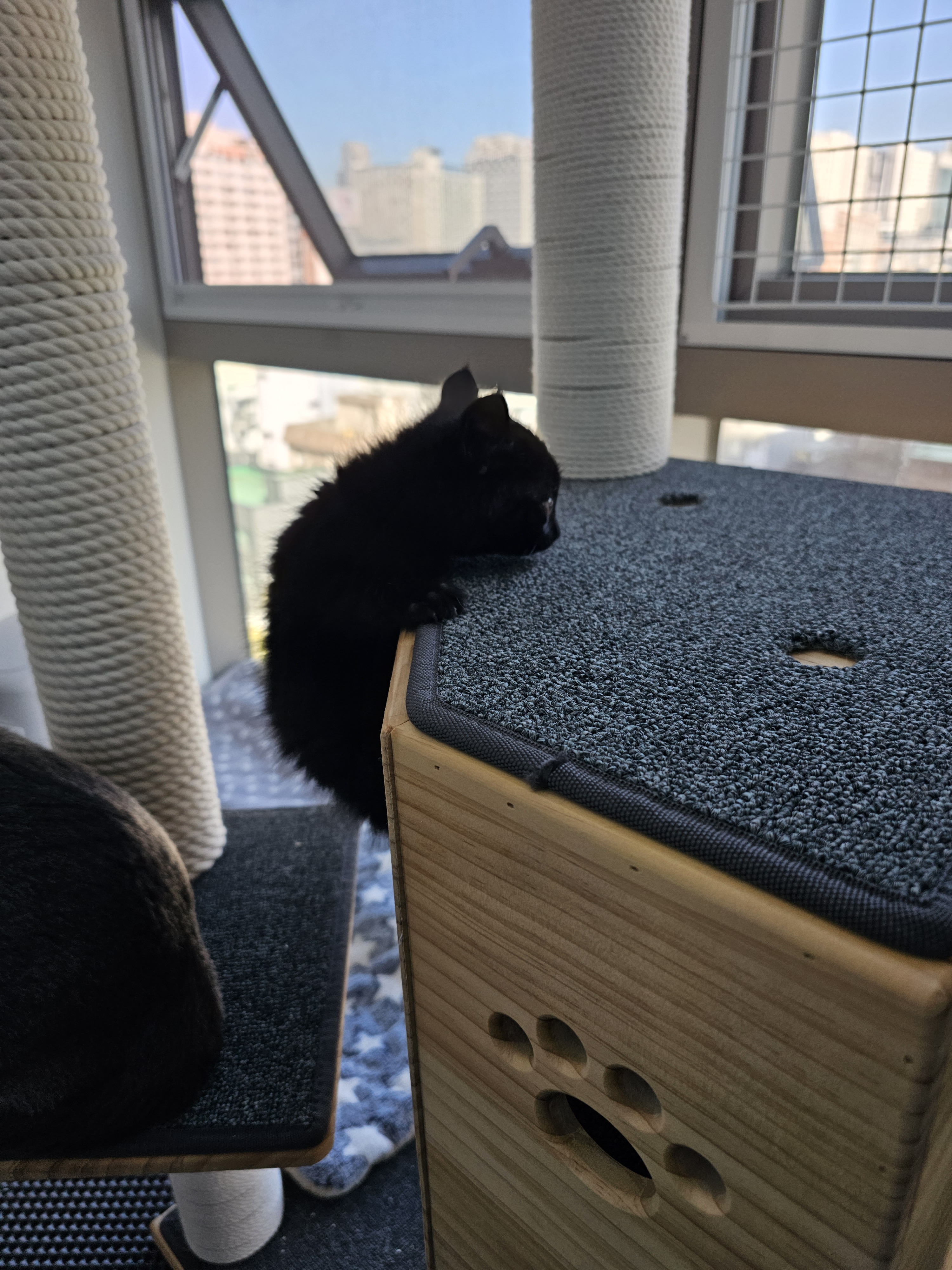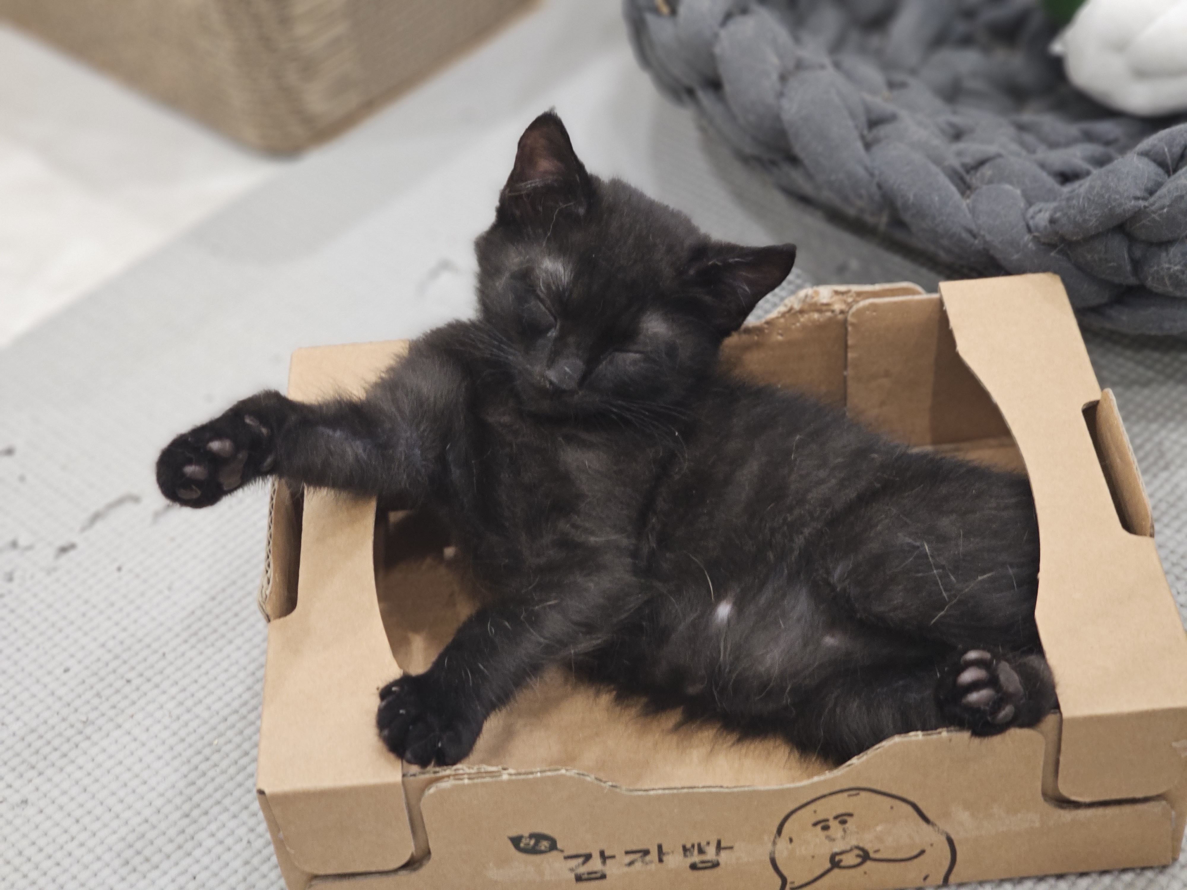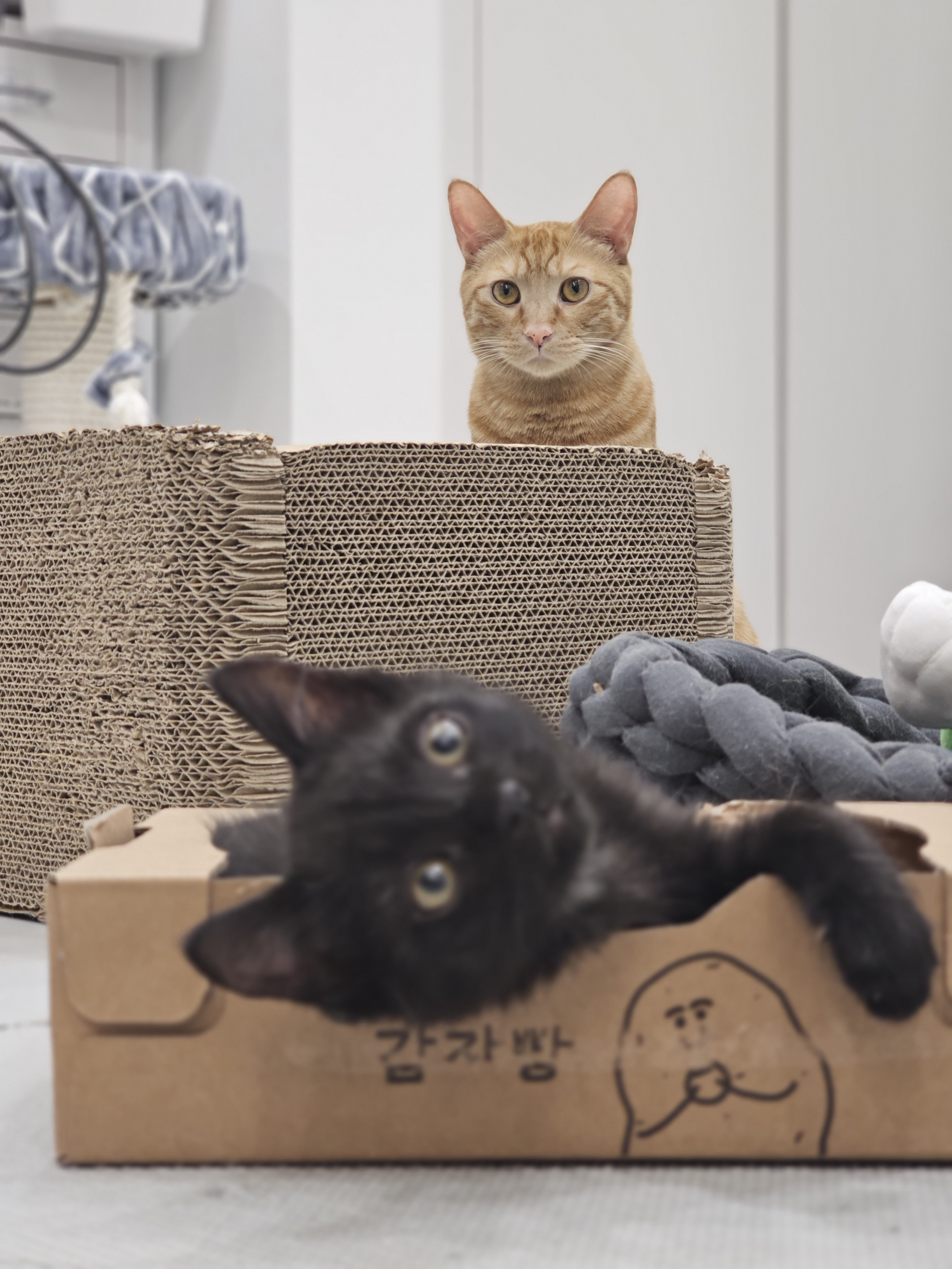 움직이길 귀찮아 함. 장난감은 안좋아하는데 밖을 좋아해서 문 열었을때 주의해야하는 요주의 고양이.