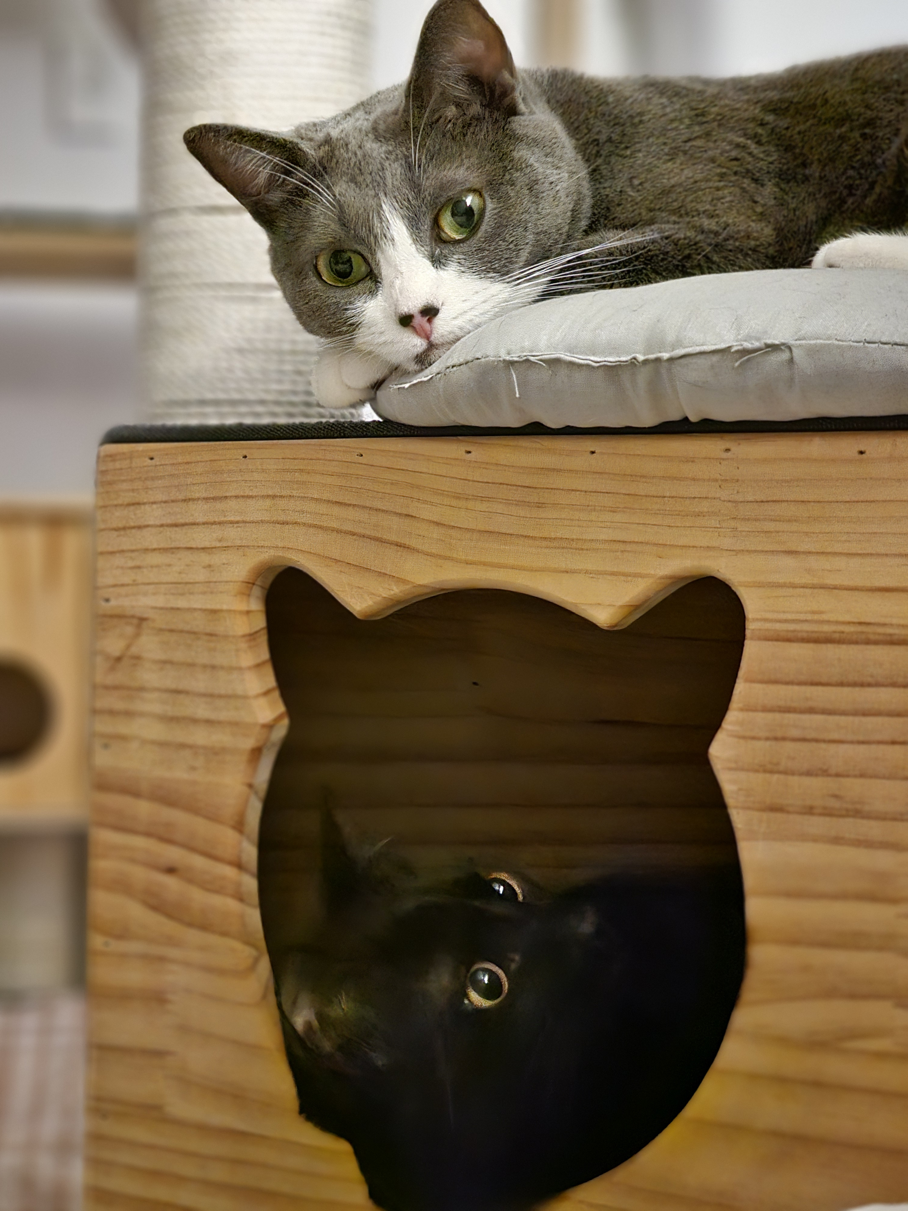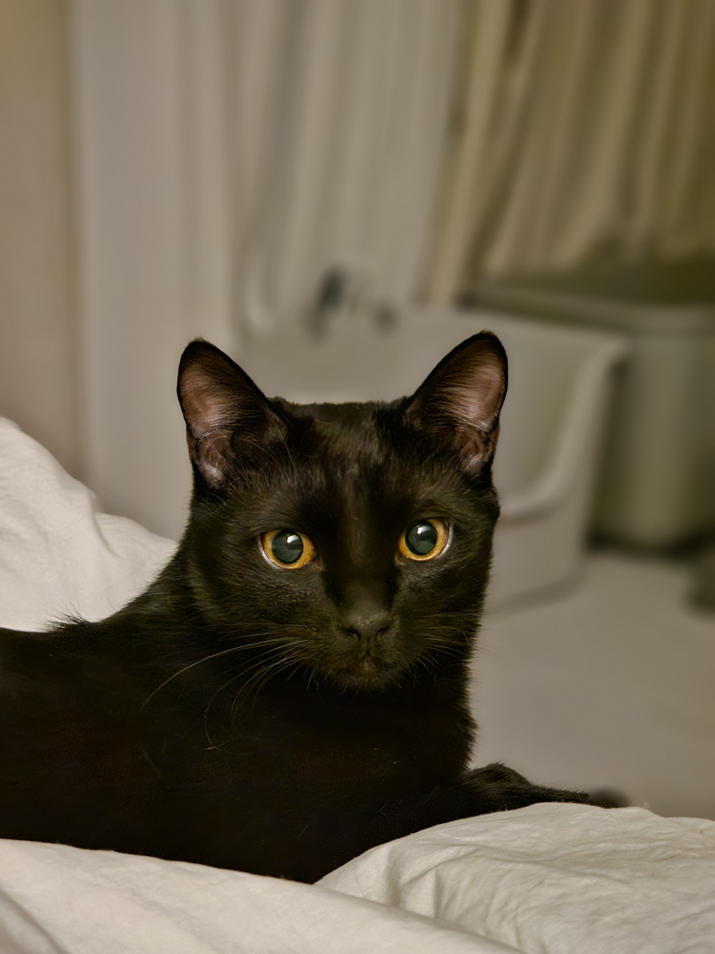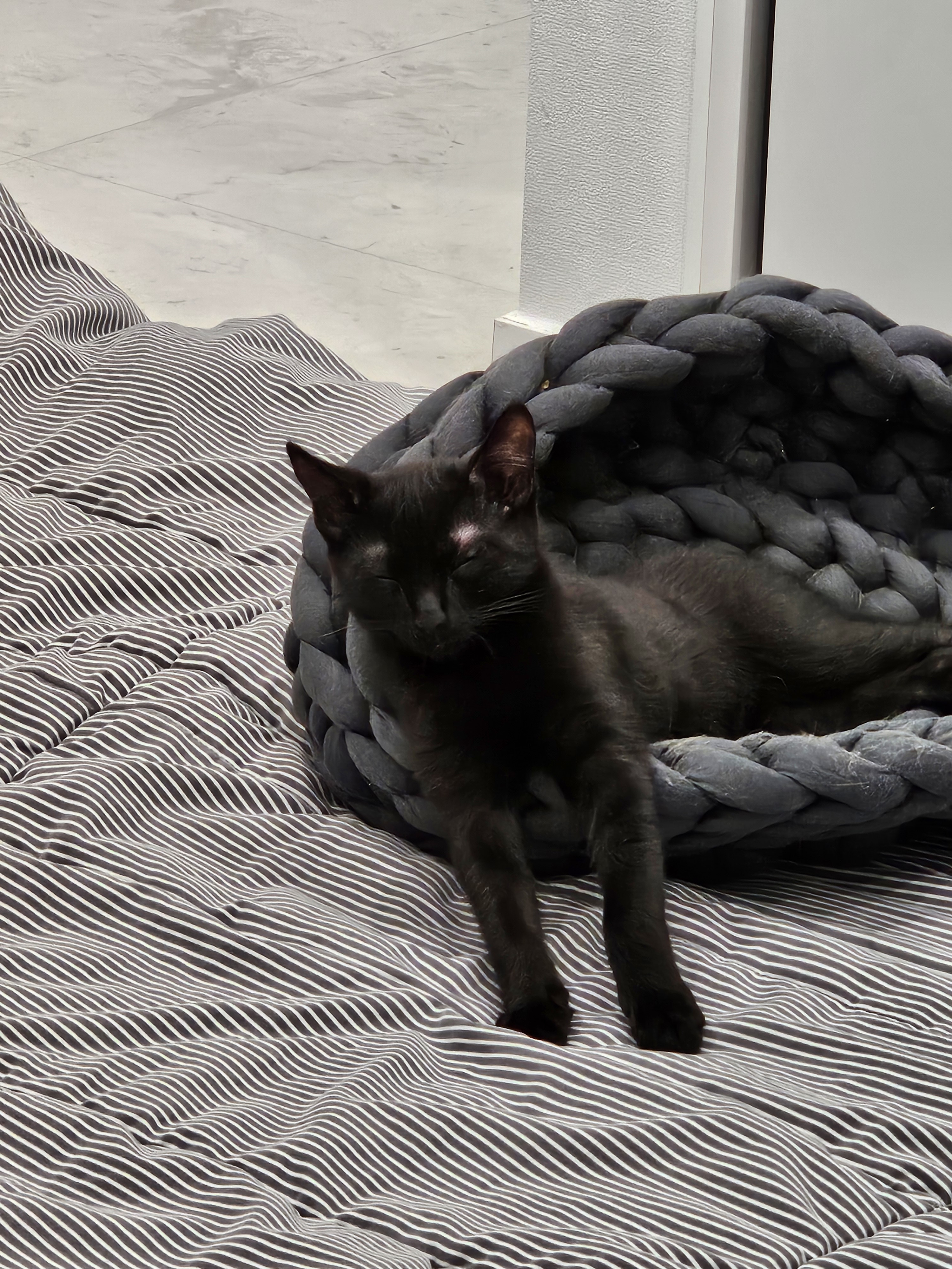 움직이길 귀찮아 함. 장난감은 안좋아하는데 밖을 좋아해서 문 열었을때 주의해야하는 요주의 고양이.