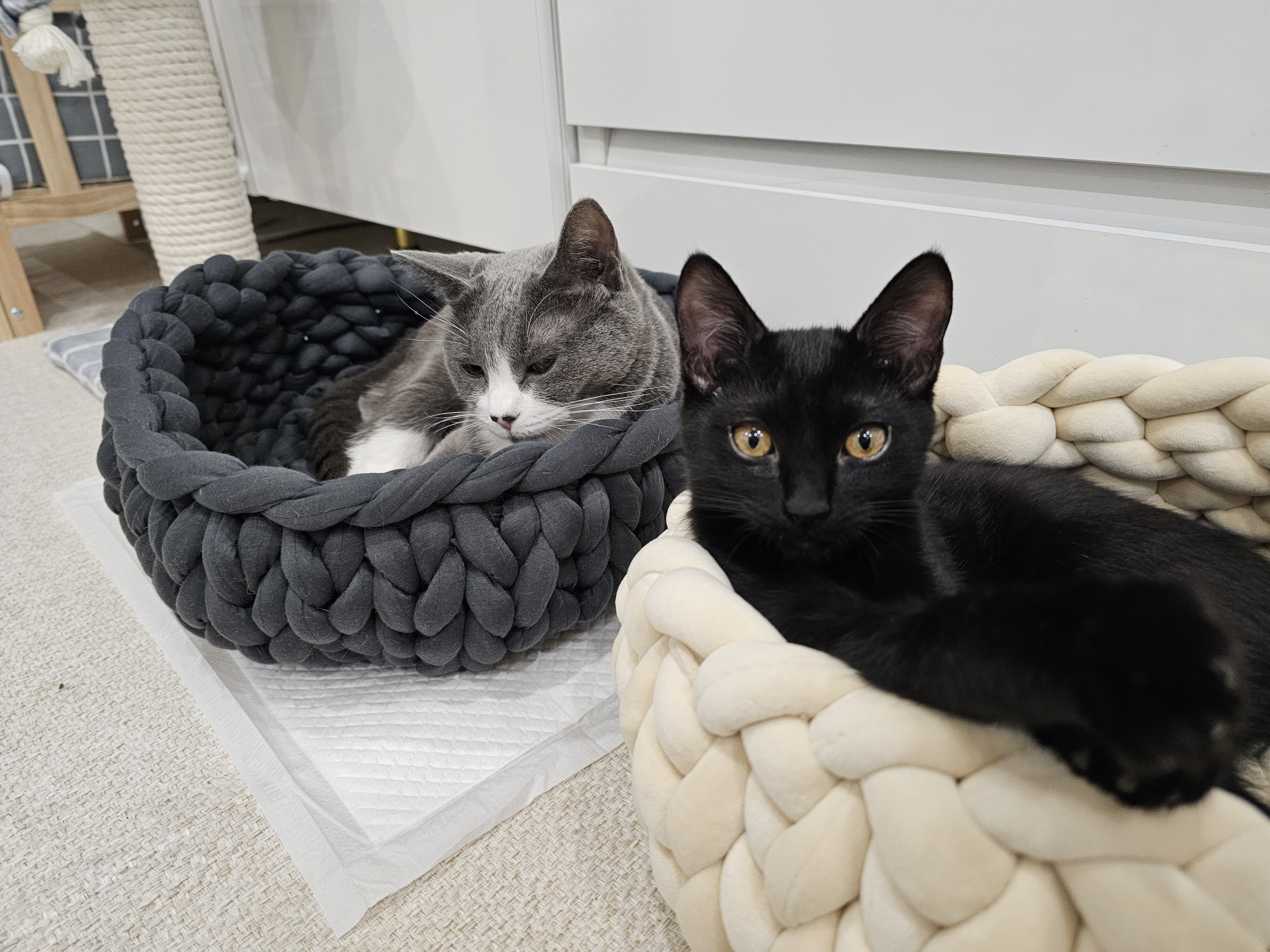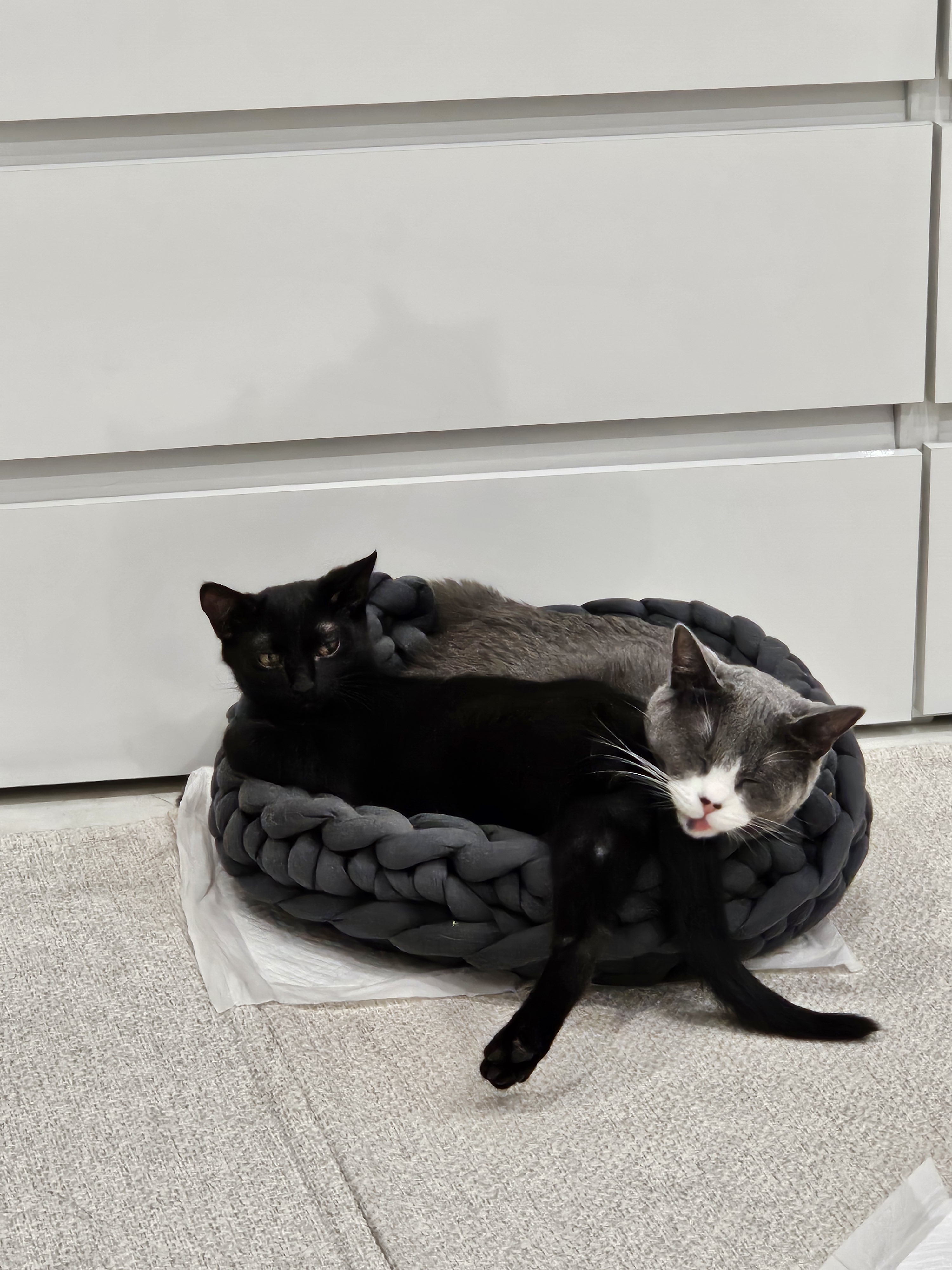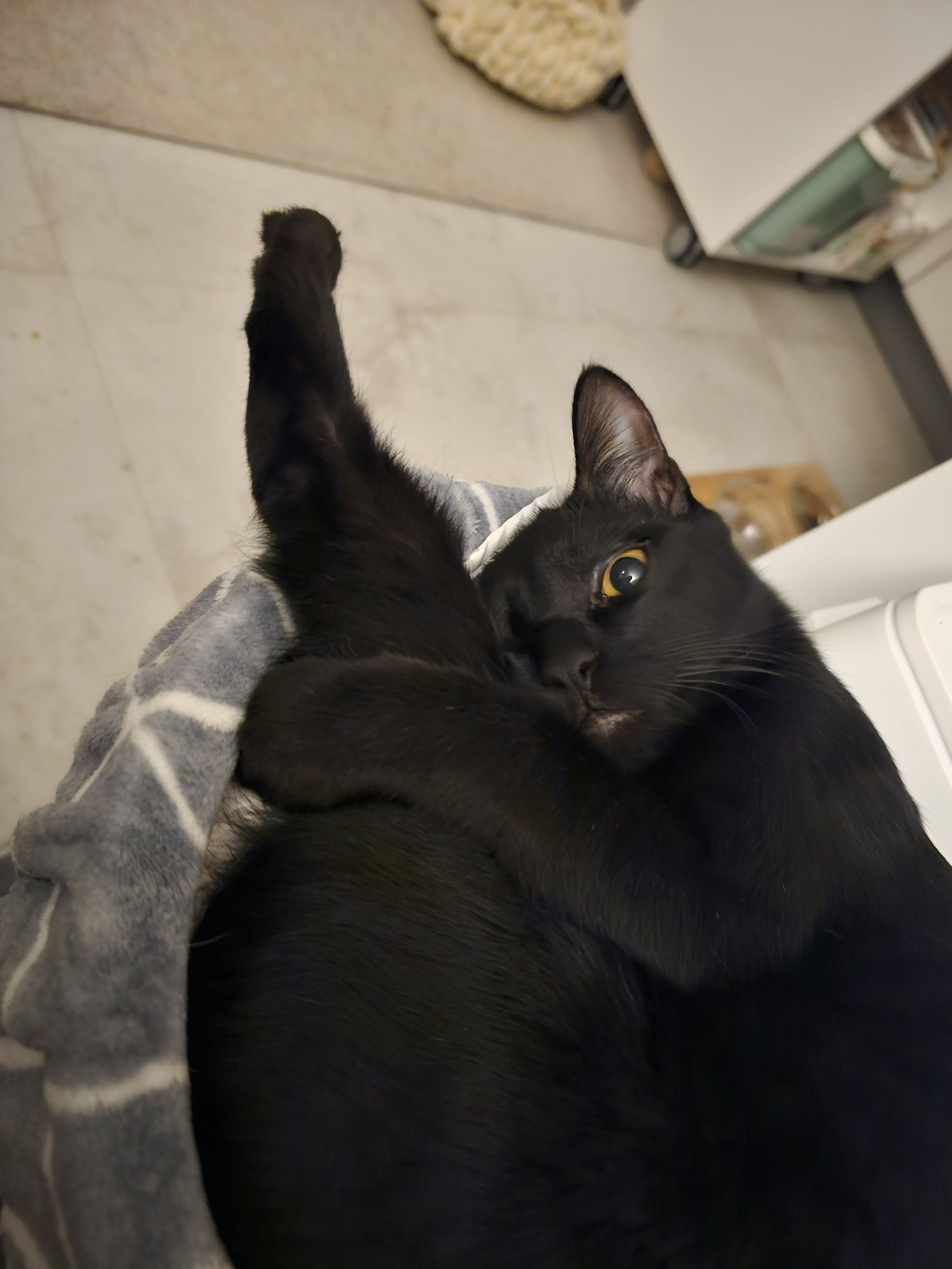 *부모님 가게에서 뒷다리 못쓰는 채로 어미한테 버려진 고양이 구출. 현재 생활하는데 지장은 없으나 자면서 오줌을 지리는 장애가 있음. 이불빨래 자주하고 오히려 좋아😉