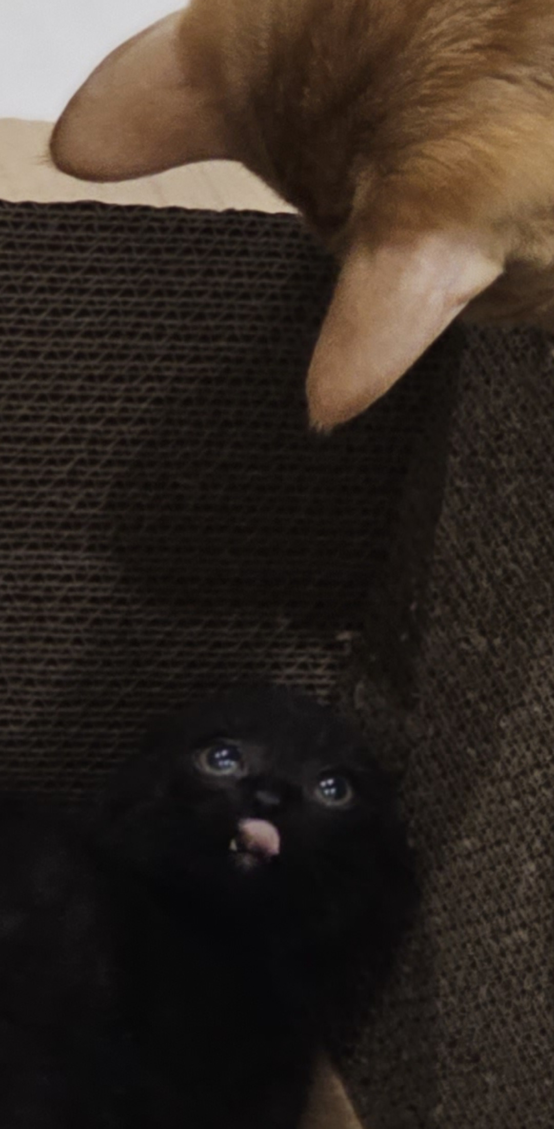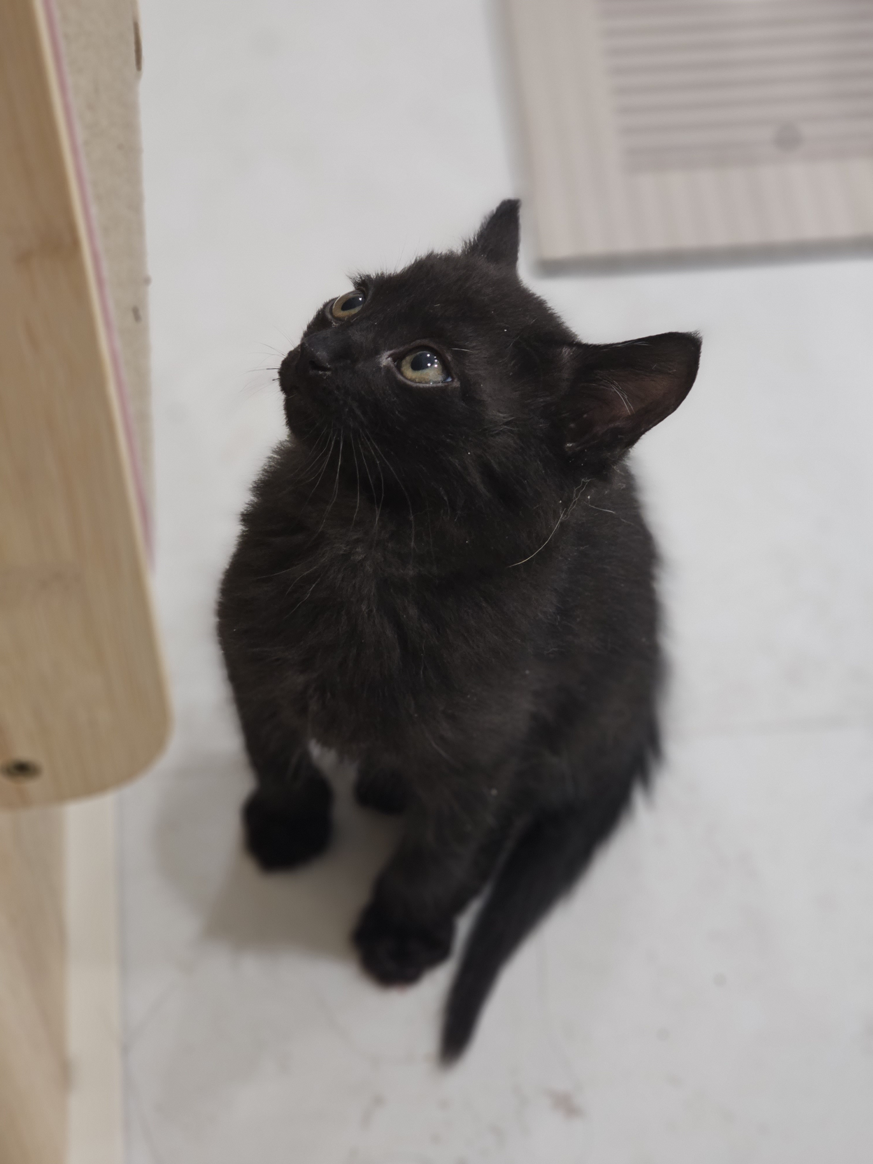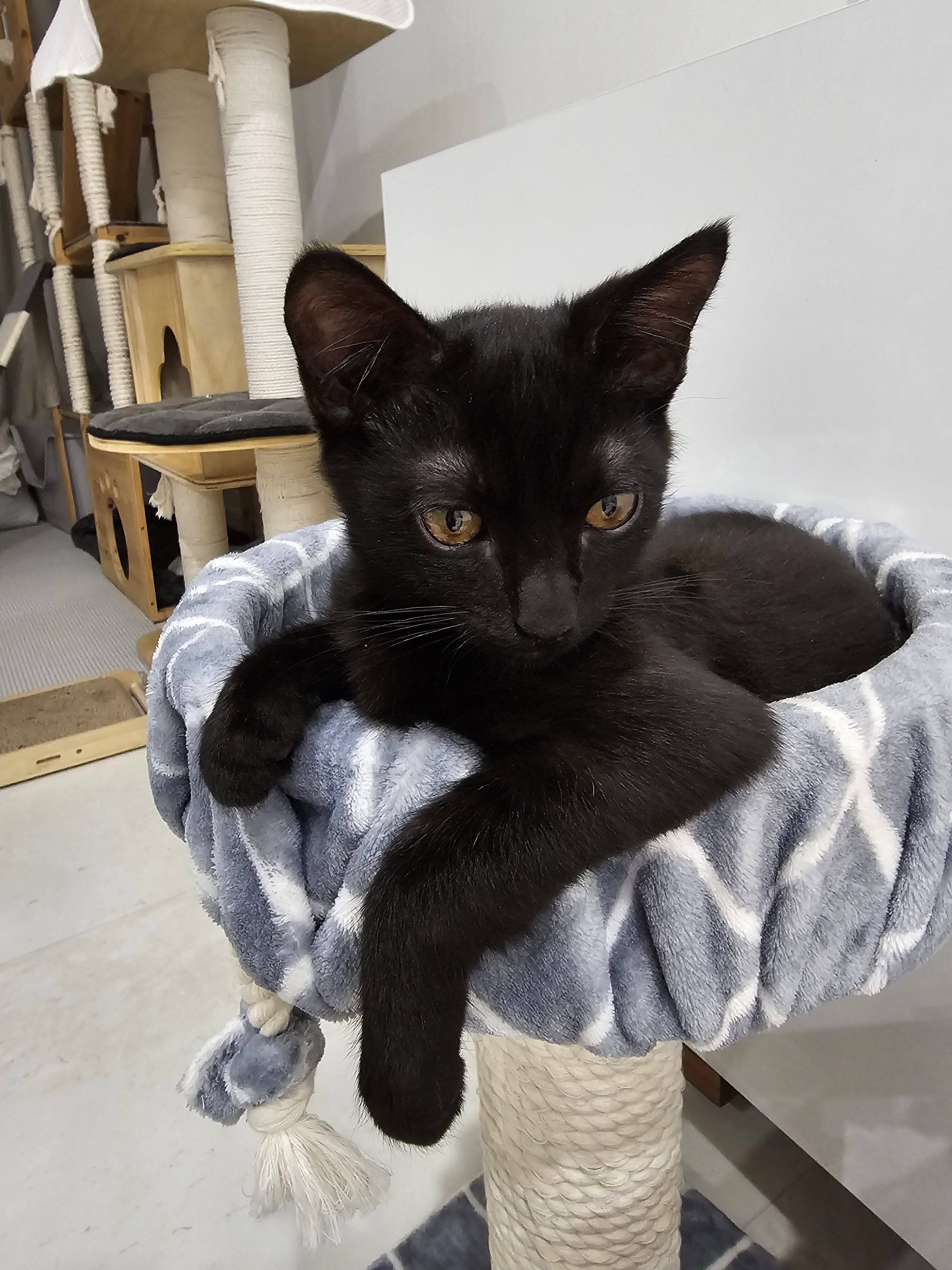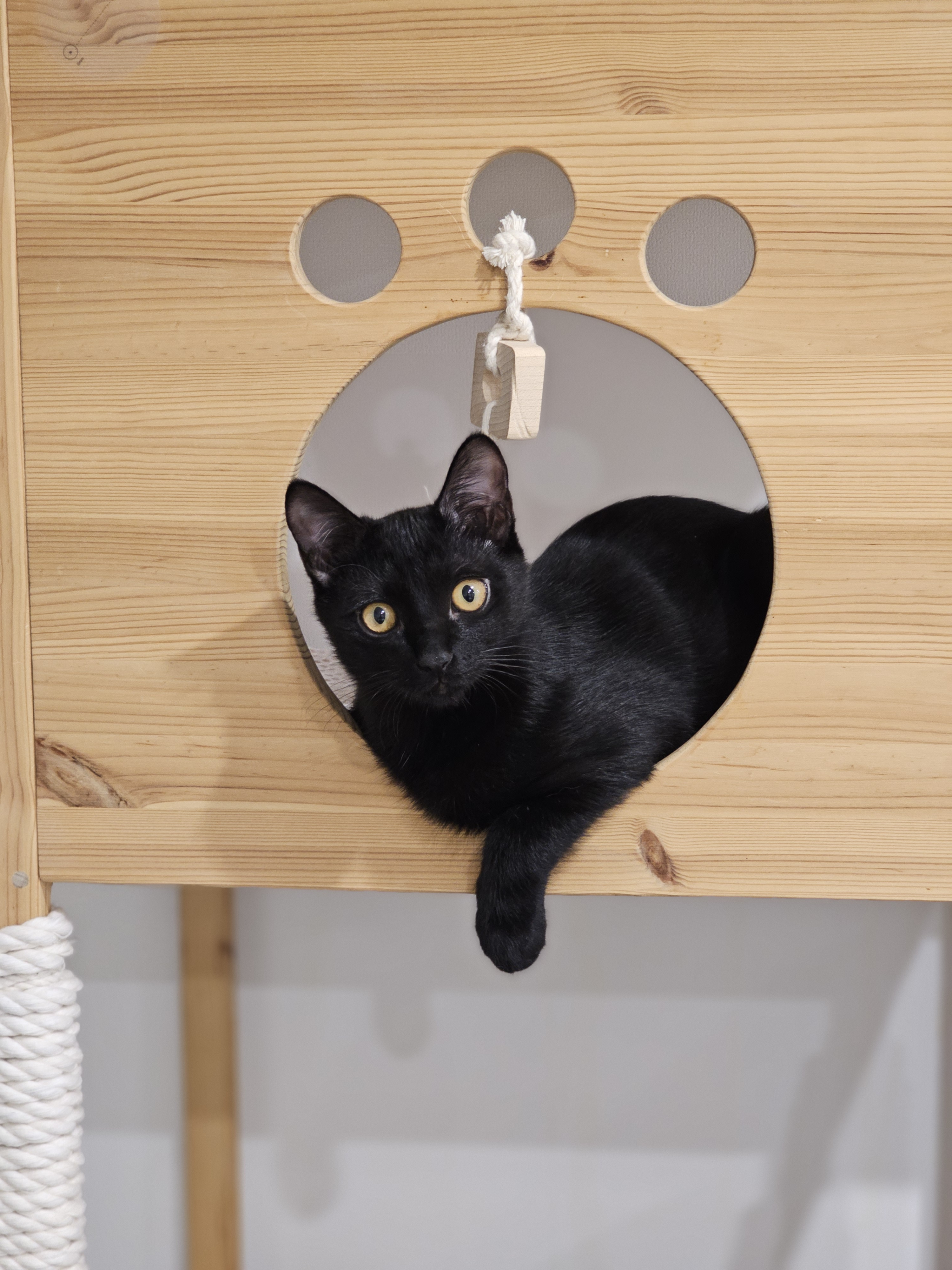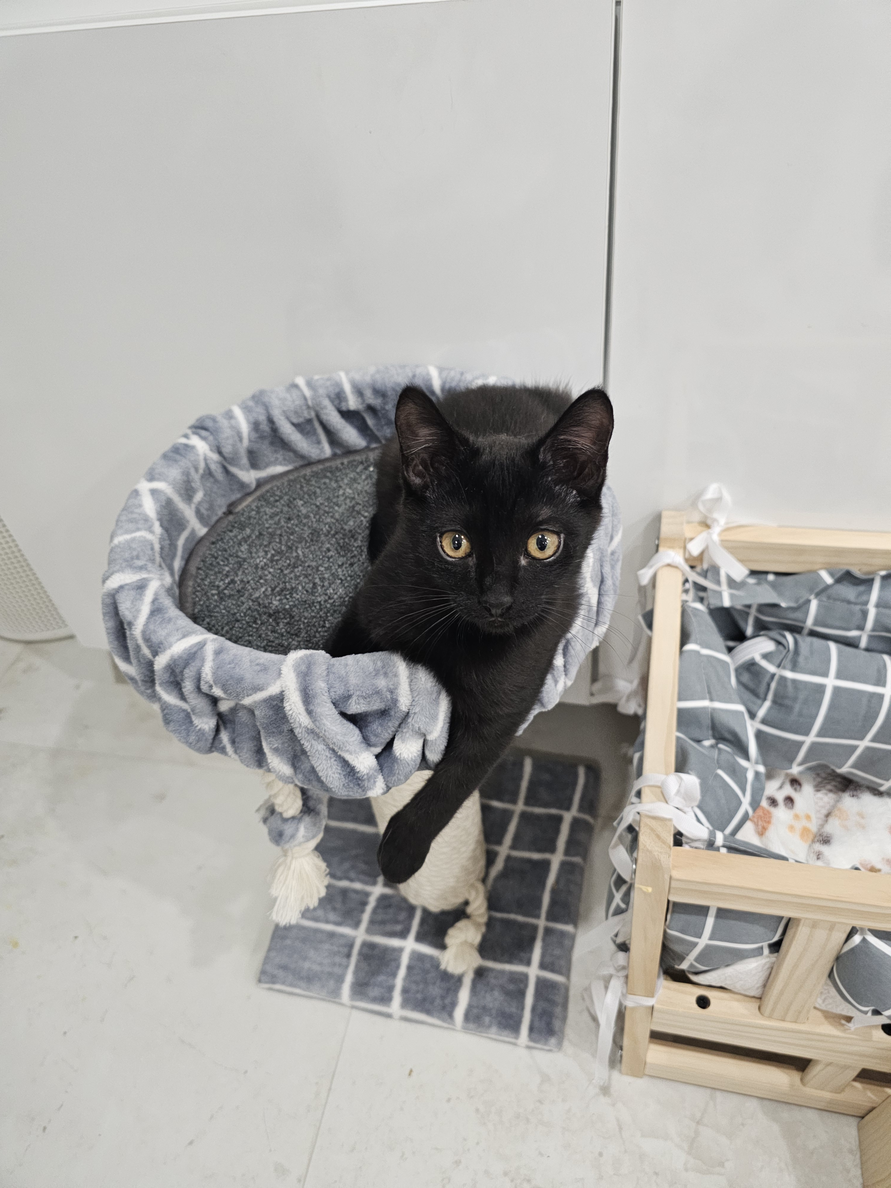 *제일 수다쟁이로 냐~옹이라고 말할 수 있으나 겁이 제일 많음. 모르는 사람 방문시 5회 이상 방문해야 얼굴 볼 수 있음. 예상외로 캣휠 주이용묘 하루에 30분 탐.