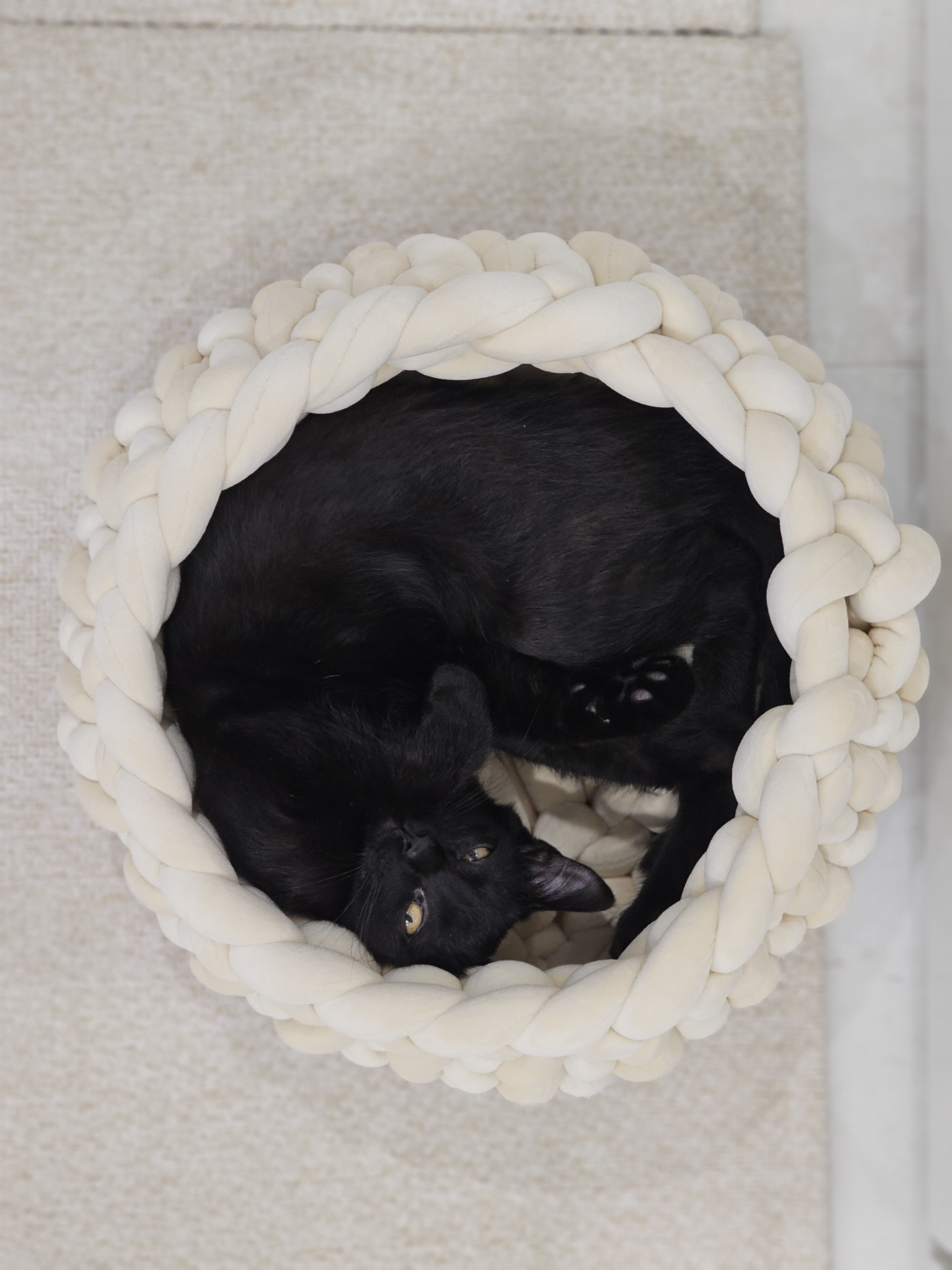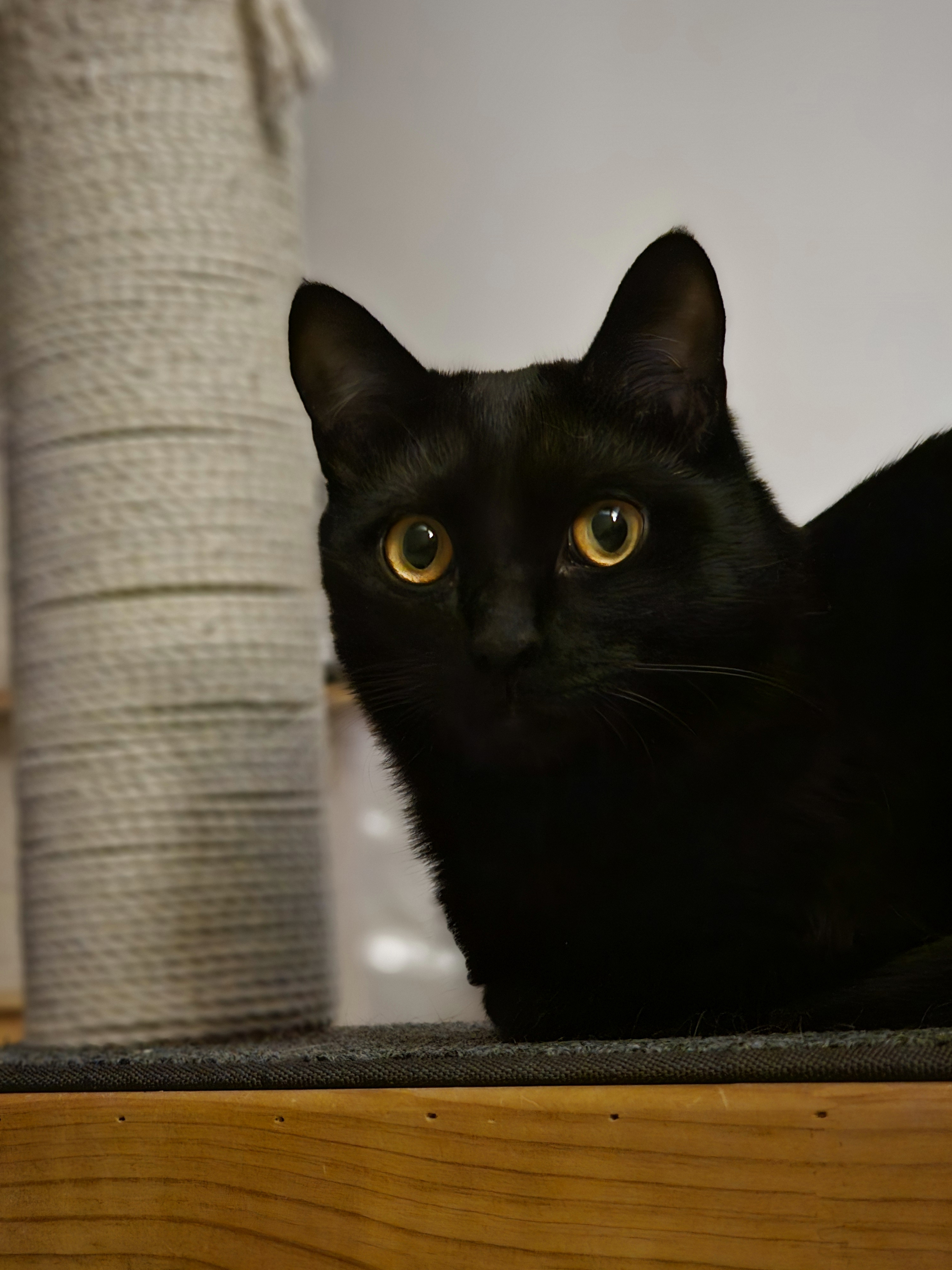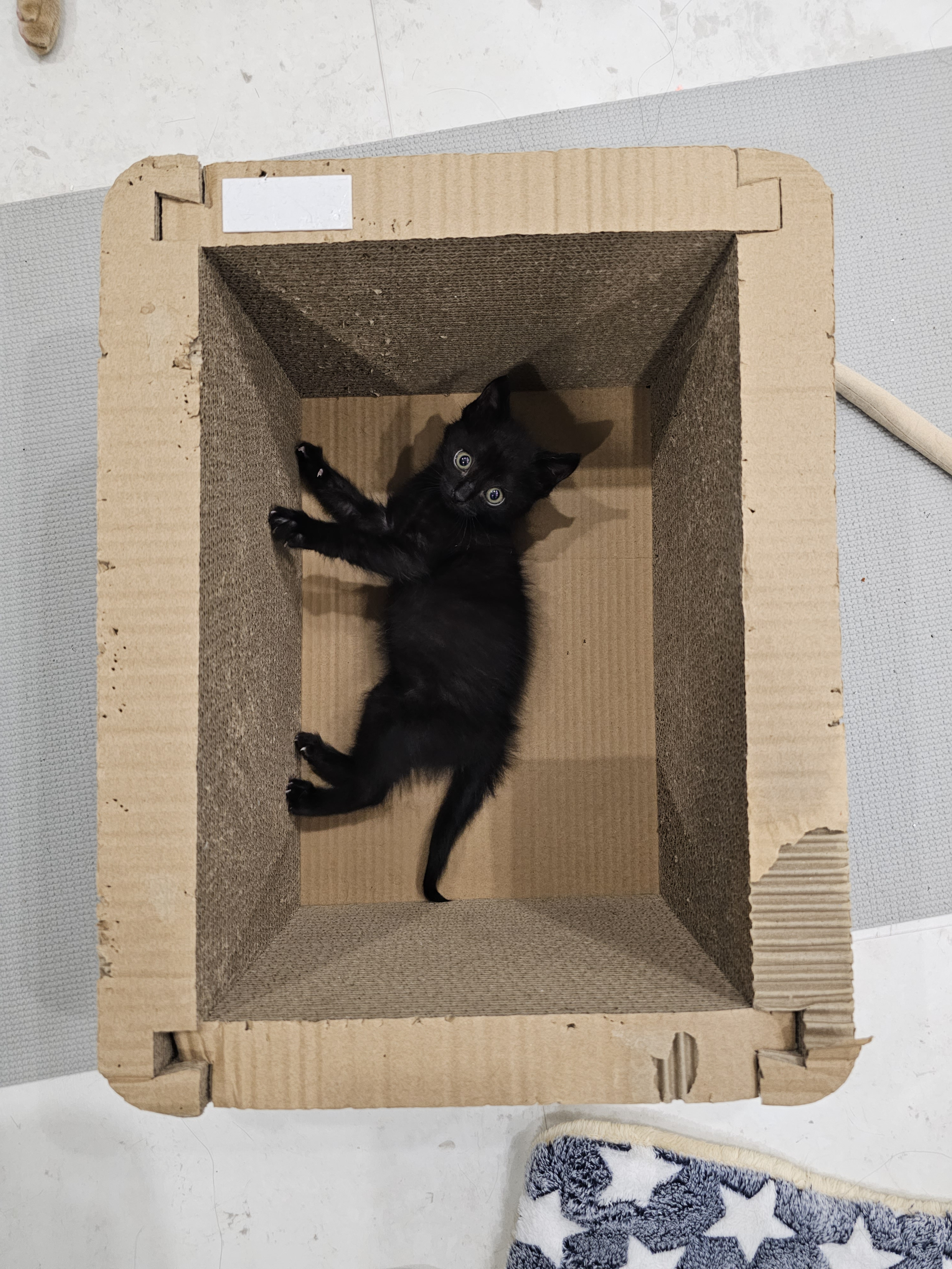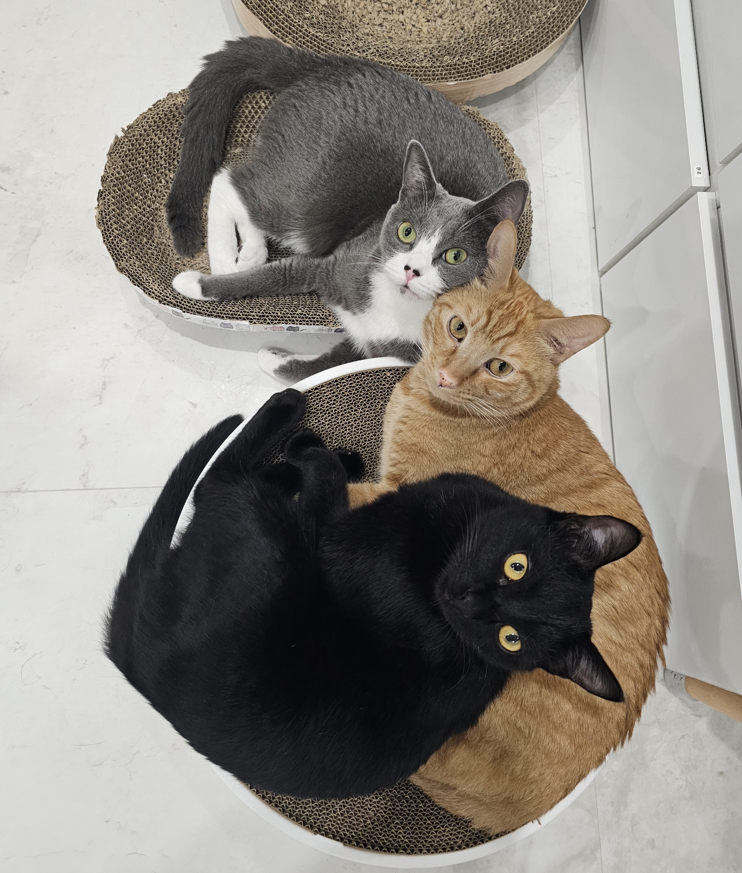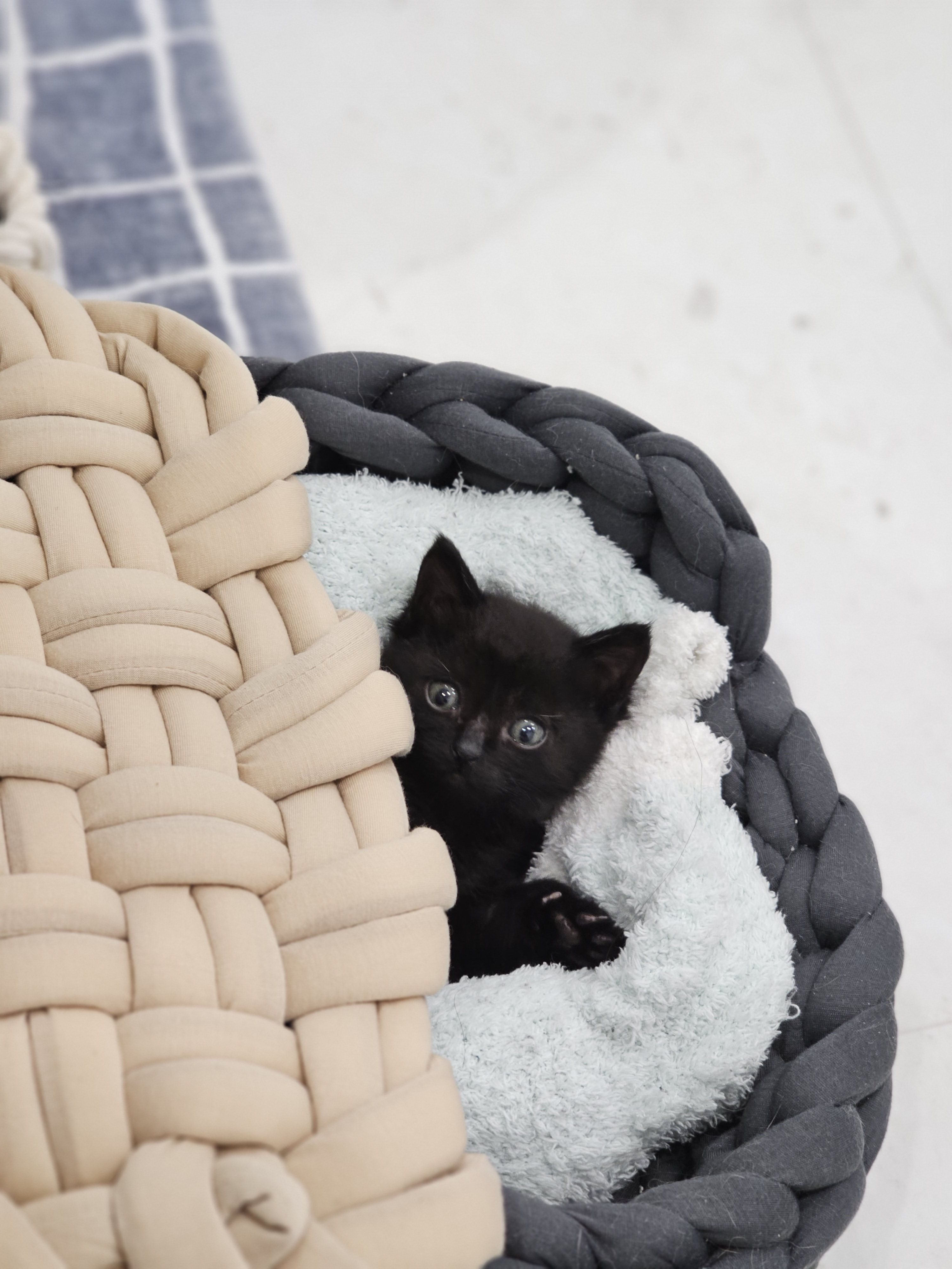 *제일 수다쟁이로 냐~옹이라고 말할 수 있으나 겁이 제일 많음. 모르는 사람 방문시 5회 이상 방문해야 얼굴 볼 수 있음. 예상외로 캣휠 주이용묘 하루에 30분 탐.