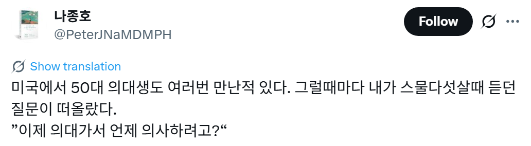 미국에서 50대 의대생도 여러번 만난적 있다.