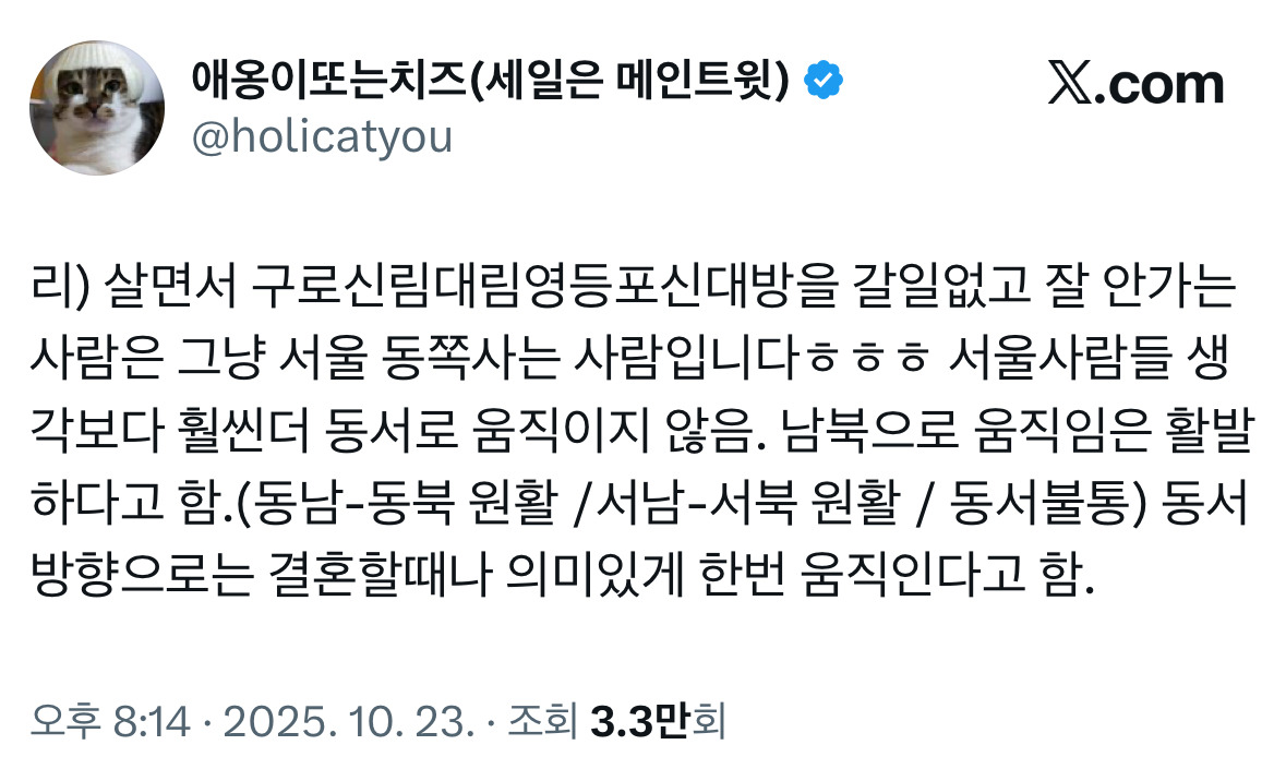 작성자면으로된샤워가운 작성시간 25.11.29 ㅇㅈ 최근에 동서로 출퇴근하는데 물리적으로도 멀지만 심리적 거리도 멀어서 더 힘들어