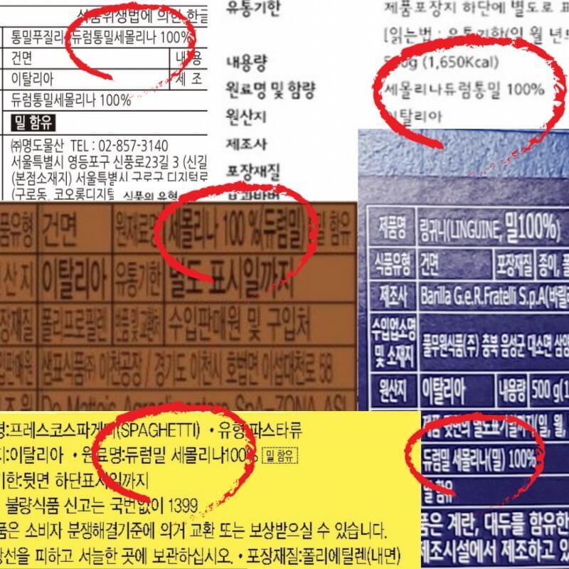 간혹 고급 파스타중엔 듀럼밀 함량이 낮은 제품도 있기는 하지만, 시중에 파는 건파스타면은 거의 다 듀럼밀 제품이니 안심하고 사먹자!