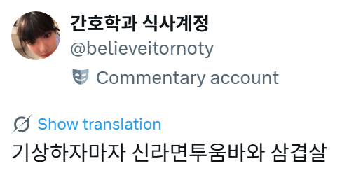 [흥미돋]기깔나게 끓인 신라면 투움바 작성자귤토끼이|작성시간25.11.21|조회수38,365 목록 댓글 39 글자크기 작게가 글자크기 크게가 출처: https://theqoo.net/square/4000578397https://x.com/believeitornoty/status/1846391453528084867?s=20 다음검색 현재 게시글 추가 기능 열기 북마크 공유하기 신고 센터로 신고 댓글 댓글 39 댓글쓰기 답글쓰기 댓글 리스트 작성자악개전문가 | 작성시간 25.11.21 맛있겠다.. 작성자내맘대로살거야말리지마 | 작성시간 25.11.21 고수의 향기가 느껴진다 투움바 맛없어서 쳐다도 안보는데 먹어보고 싶음 삼겹살 개잘구웠어 작성자투명 버러지 | 작성시간 25.11.21 와 때깔 미쳤음 작성자기지미오 | 작성시간 25.11.21 요리 몇년차야? 기깔나 작성자푸바오늘안녕해 | 작성시간 25.12.04 미쳨ㅅ네때깔 댓글 전체보기