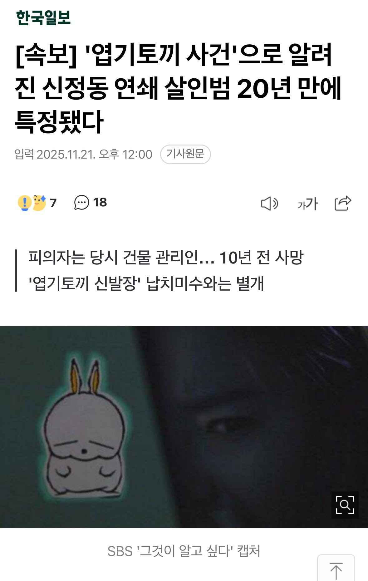 작성자흔들리는시간속에 작성시간 25.11.22 여시들 기사를 읽어봐! 엽기토끼 범인아님!!
