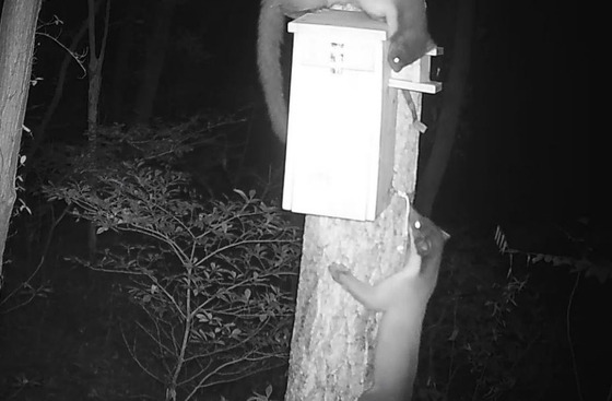 한려해상국립공원 내 인공둥지를 확인하는 담비. 〈사진=국립공원공단 한려해상국립공원사무소 제공