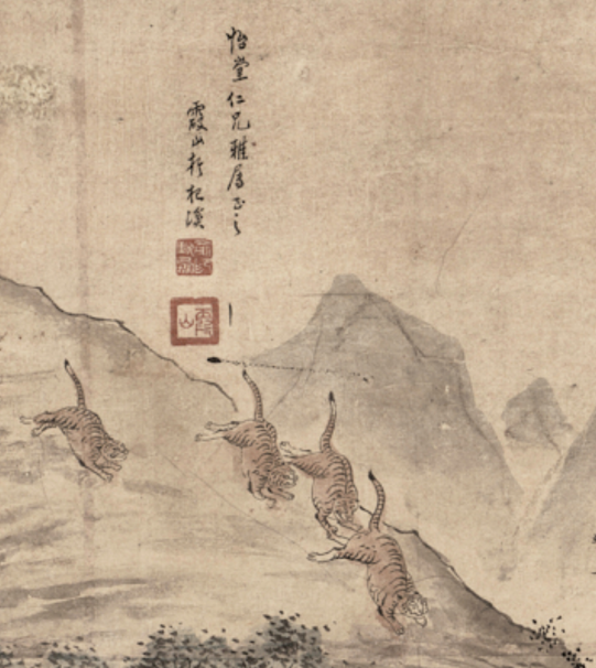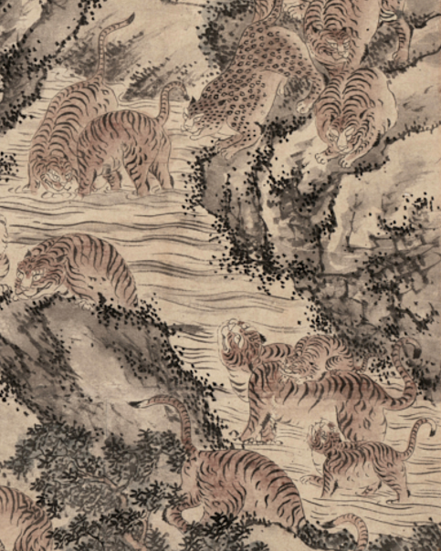 산중희호도(山中戱虎圖), 수묵담채, 87.3x229.2cm, 조선 말기