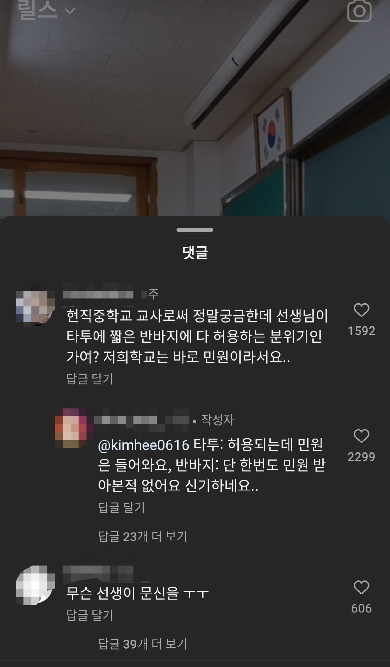 작성자영원한맑은하늘 작성시간 25.11.22 나는 문신 반바지 뭐 괜찮은데 수업중 아님?? 핸드폰으로 왜 촬영해?????