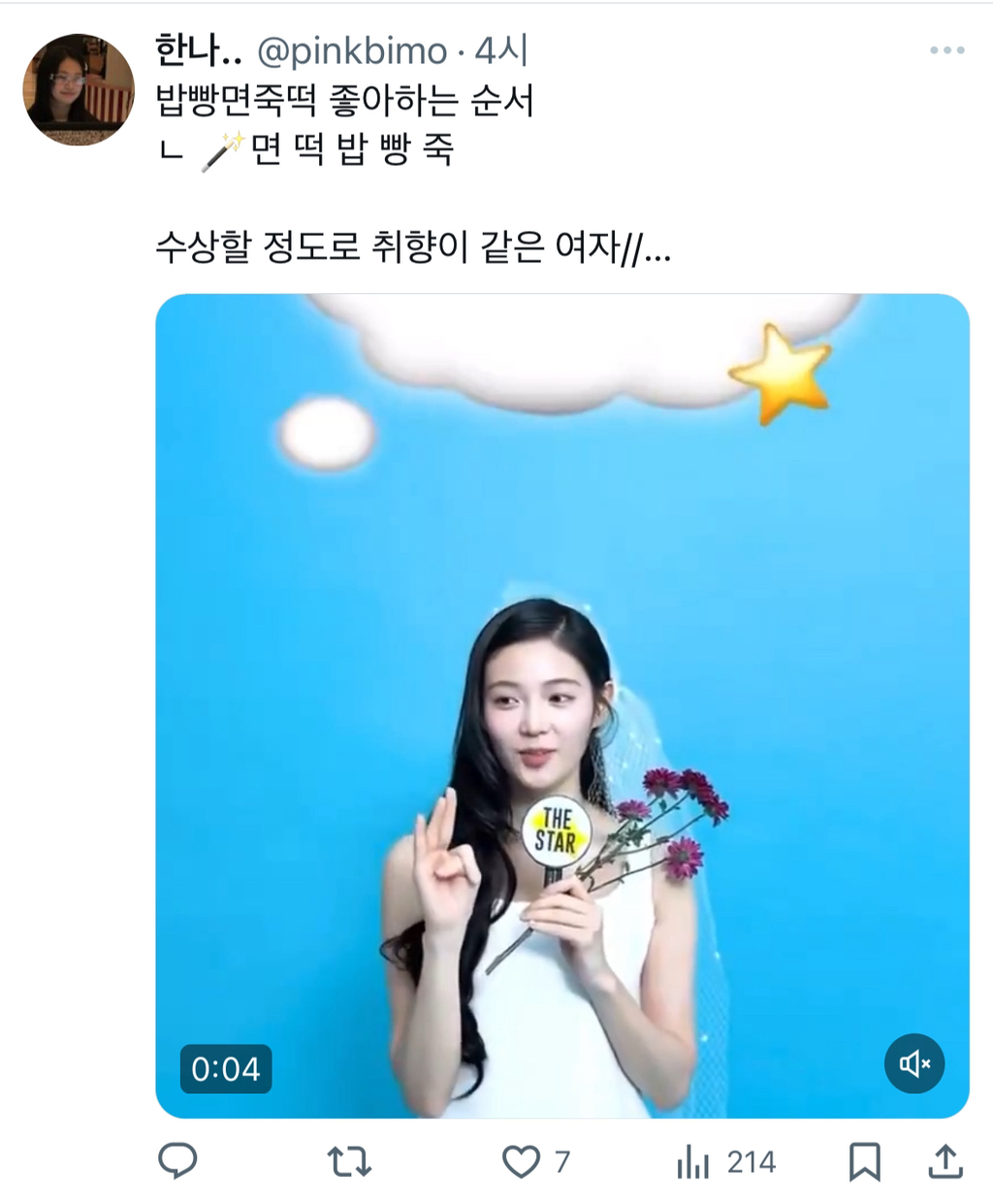 [스크랩] [흥미돋]너네 이거 순서 고를수있어? 작성자리논헙|작성시간25.11.22|조회수70,797 목록 댓글 811 글자크기 작게가 글자크기 크게가 난 떡면밥빵죽 다음검색 스크랩 원문 : 쭉빵카페 현재 게시글 추가 기능 열기 북마크 공유하기 신고 센터로 신고 댓글 댓글 811 댓글쓰기 답글쓰기 댓글 리스트 작성자양참덮 | 작성시간 25.11.24 밥면빵떡죽 답댓글 작성자구구콘맛있다 | 작성시간 25.11.27 나도이거! 은근 겹치는사람 없다 작성자9론산론9 | 작성시간 25.11.25 밥죽면빵떡 작성자뜝져럭 | 작성시간 25.11.26 빵 면 죽 밥 떡 작성자BOGGI | 작성시간 25.11.27 댓글 827개중에 나랑 겹치는 사람이 32명뿐이라니. 이러니 로또가 안걸리지.. 댓글 전체보기