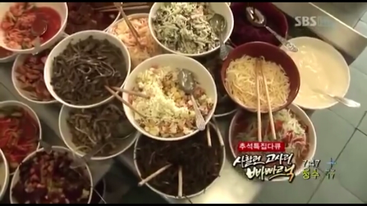 1위 명태회무침 2위 오징어무침 3위 숙주나물 4위 톳무침 5위 고사리나물
