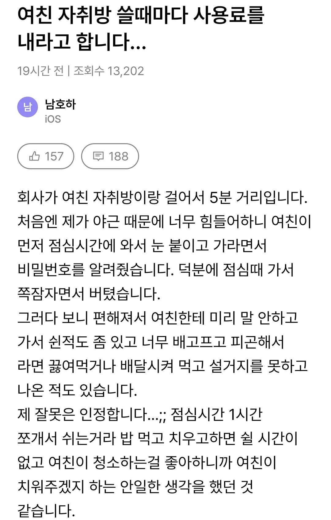 [흥미돋]여친 자취방 쓸때마다 사용료를 내라고 합니다... 작성자통통한 치즈떡|작성시간25.11.22|조회수38,942 목록 댓글 286 글자크기 작게가 글자크기 크게가 출처: 여성시대 통통한 치즈떡 다음검색 현재 게시글 추가 기능 열기 북마크 공유하기 신고 센터로 신고 댓글 댓글 286 댓글쓰기 답글쓰기 댓글 리스트 작성자내 꿈은 돈 많은 백수 | 작성시간 25.11.24 ㄷㄷ 작성자박보영손예진한지민 | 작성시간 25.11.24 헤어져주라 병신아 작성자슬픔누리증후군 | 작성시간 25.11.24 ㅂㅅ 작성자참아야지뭐 | 작성시간 25.11.24 미친새끼가 작성자상추를 치료해줄 어디 안마 | 작성시간 25.11.26 ㅅㅂ 댓글 전체보기