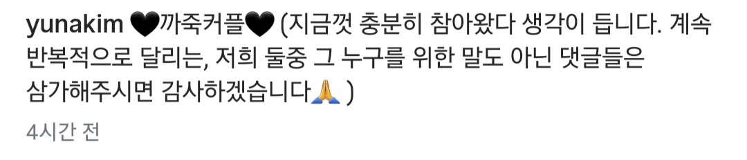 [흥미돋]김연아가 대놓고 싫다고 말했는데도 계속 달리는 댓글 유형 작성자솜사탕몽글몽글|작성시간25.11.22|조회수97,508 목록 댓글 162 글자크기 작게가 글자크기 크게가 출처: 여성시대 솜사탕몽글몽글이렇게 올렸다가 아예 주접 댓글이라고 못 박아서 아래 내용으로 수정함 다음검색 현재 게시글 추가 기능 열기 북마크 공유하기 신고 센터로 신고 댓글 댓글 162 댓글쓰기 답글쓰기 댓글 리스트 작성자짱워녕 | 작성시간 25.11.24 잘어울리는데 왜들저랴 둘이 사랑해서 결혼했다는데 작성자역카프리오 | 작성시간 25.11.24 얼굴이 닮았네 작성자옥씨부인뎐 | 작성시간 25.11.24 진심 선남선녀 ㄹㅈㄷ인데 왜 알아서 살게 냅둬 작성자한ㄴㅕ | 작성시간 25.11.25 개잘어울림 작성자테토남이재명 | 작성시간 25.11.25 무슨 댓글이 달리길래..? 하여튼 사람들 오지랖 알아준다 댓글 전체보기