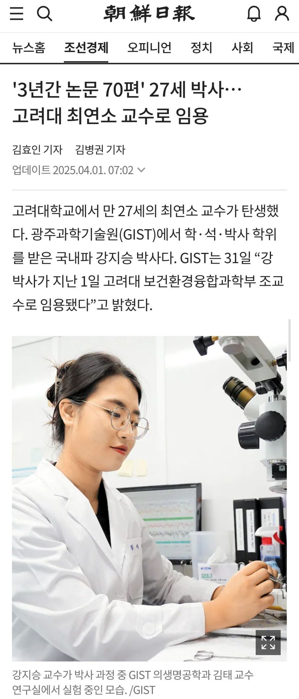 [스크랩] [흥미돋]'3년간 논문 70편' 27세 박사… 고려대 최연소 교수로 임용 작성자시간에기대어|작성시간25.11.22|조회수46,552 목록 댓글 58 글자크기 작게가 글자크기 크게가 다음검색 스크랩 원문 : 도탁스 (DOTAX) 현재 게시글 추가 기능 열기 북마크 공유하기 신고 센터로 신고 댓글 댓글 58 댓글쓰기 답글쓰기 댓글 리스트 작성자아이유여친 | 작성시간 25.11.22 와 멋지다 작성자피노누아 | 작성시간 25.11.23 와… 작성자미지의 호수 | 작성시간 25.11.23 미쳤다.. 3년간 논문 70편... 작성자윙치킨치킨치킨 | 작성시간 25.11.23 척척박사님 똑순이 작성자Valancy Stirling | 작성시간 25.11.24 천재 관상이심ㅋㅋ 댓글 전체보기