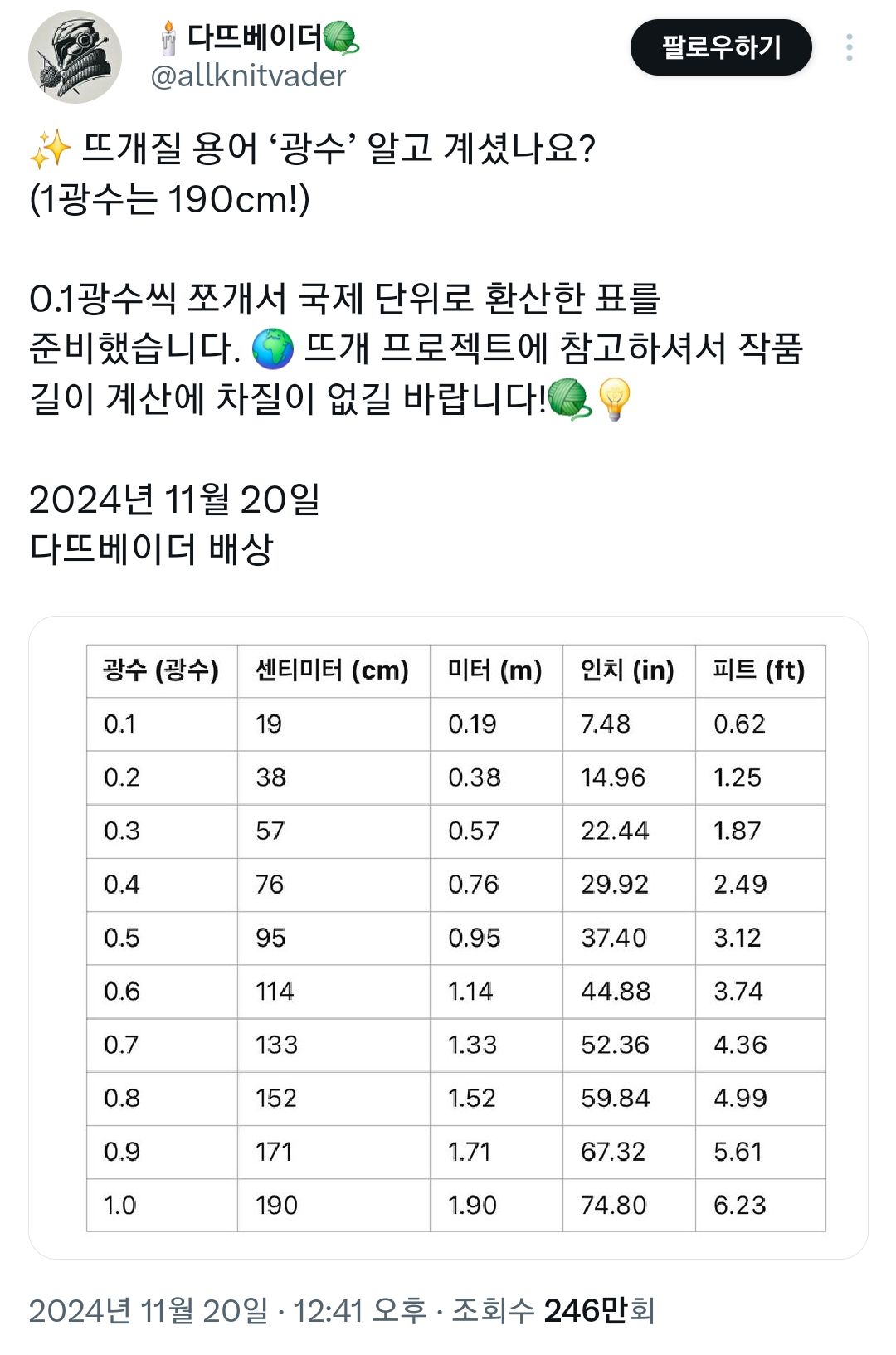 맨 아래 짤을 바탕으로 뜨개인들 사이에선 1광수 떳어요 이렇게 부르기 시작함 ㅋㅋ