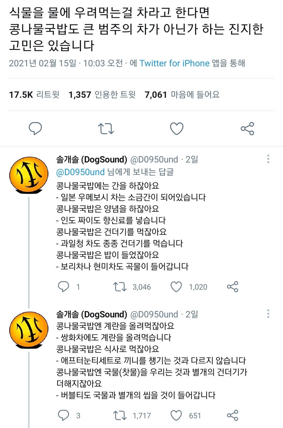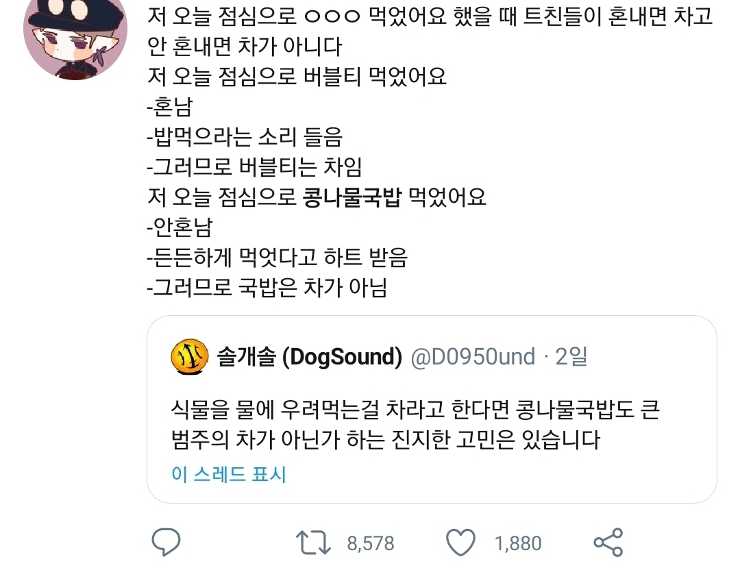 당연히 밥이지 무슨 개소리를 하는 거야 등의 날선 댓글 X