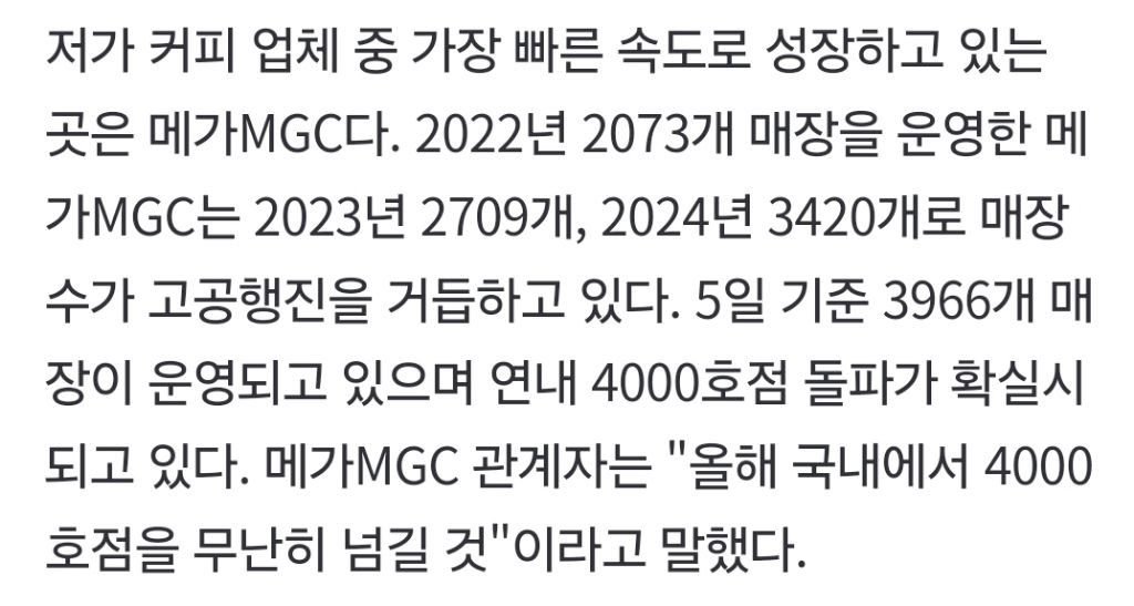 [여시뉴스데스크]스벅·할리스 주춤한 새…저가커피 매장은 1만개 넘으며 '훨훨' 작성자카페라떼오렌지|작성시간25.11.23|조회수10,813 목록 댓글 44 글자크기 작게가 글자크기 크게가 출처: https://n.news.naver.com/article/009/0005585318?sid=103스벅·할리스 주춤한 새…저가커피 매장은 1만개 넘으며 '훨훨'컴포즈·빽다방·더벤티 등 5곳 올해들어 1200개 늘어날동안 프리미엄은 100개 증가 그쳐 메가커피 영업익 1년새 55%↑ 2~3년내 스타벅스 추월할듯 불황에 가성비 소비 확대되고 1억미만 창업비에 점n.news.naver.com 다음검색 현재 게시글 추가 기능 열기 북마크 공유하기 신고 센터로 신고 댓글 댓글 44 댓글쓰기 답글쓰기 댓글 리스트 작성자옴미야 | 작성시간 25.11.23 메가 무슨 카페베네 보는것같음 근데 진짜 제일 맛없어 더벤티나 메머드 감 작성자크라이치즈버거 | 작성시간 25.11.23 메머드 컴포즈 텐퍼센트 작성자후아유아후 | 작성시간 25.11.23 헐 난 메가 맛있는데 작성자호올스악개 | 작성시간 25.11.24 매머드 맛있음 작성자토크차단기 | 작성시간 25.11.25 메가 맛없어.. 차라리 더벤티나 메머드가 더 나음 댓글 전체보기