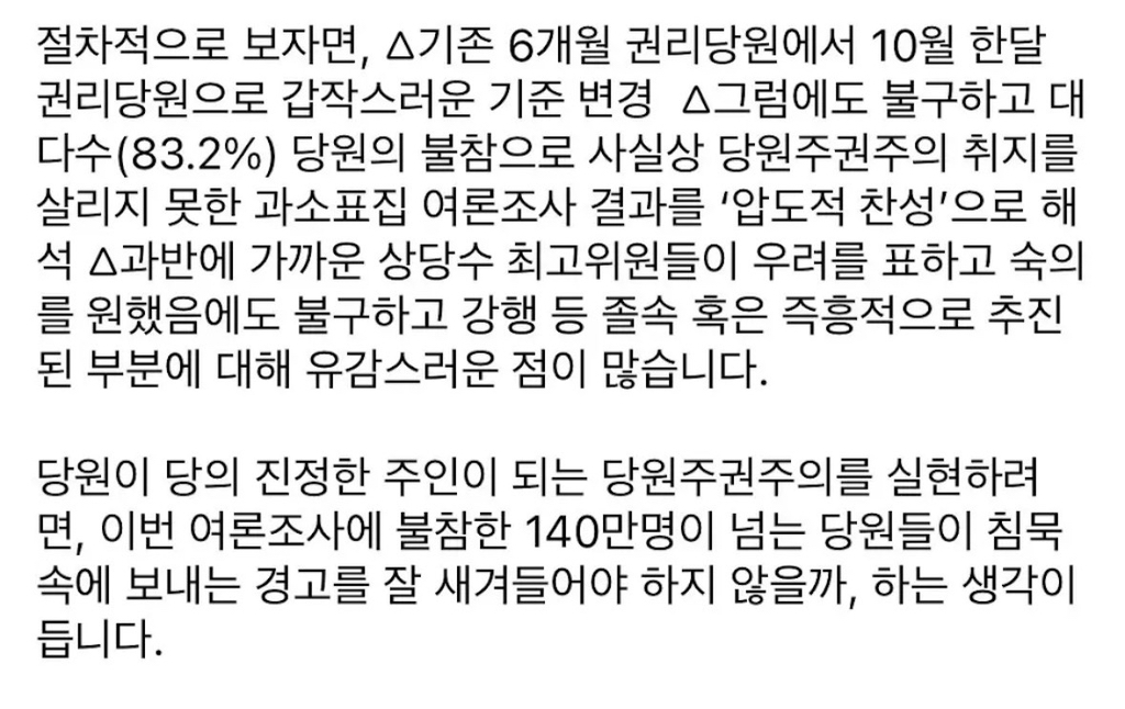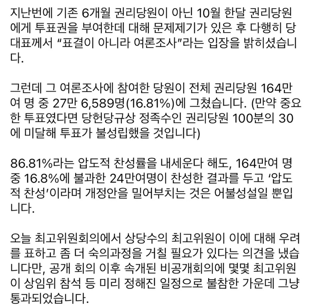 당원 여론조사라더니 저걸 결과로 둔갑시켜서 졸속 개정함