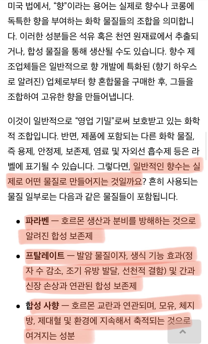 너무 충격적이더라구. 매일 뿌린 향수가 내 자궁건강을 망가뜨리고 있었다니...